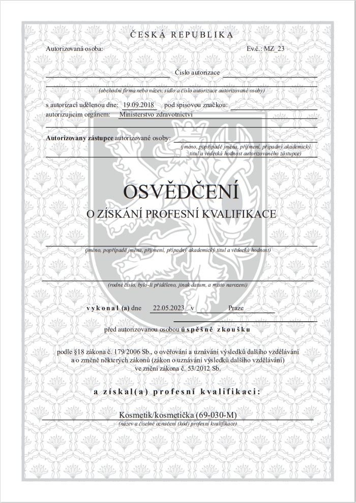 Švietimo ministerijos akredituota licencija (Akreditované MŠMT České Republiky) pripažįstama visose Europos šalyse. Tai reiškia, kad turite plačias įsidarbinimo galimybes ir galite dirbti bet kurioje Europos Sąjungos šalyje. Rekomendacinis laiškas labai padidina jūsų konkurencingumą JAV rinkoje ir suteikia galimybę patekti į vieną didžiausių tatuiruočių rinkų pasaulyje.
