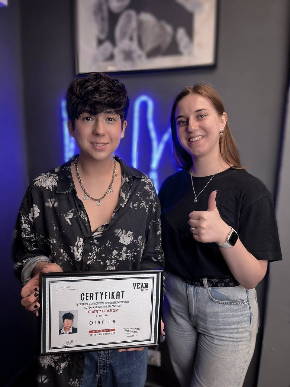 Rekomendacinis laiškas iš VEAN Tattoo išduodamas pagal poreikį ir patvirtina jūsų profesionalumą potencialiems darbdaviams ar klientams, ypač JAV ir Kanadoje. Aktyviai plėtojame savo ryšius šiose rinkose, suteikdami savo absolventams papildomų karjeros galimybių. Laiškas išsamiai aprašo pagrindinius jūsų mokymo ir įgūdžių aspektus, todėl yra neįkainojamas įrankis jūsų karjerai skatinti.