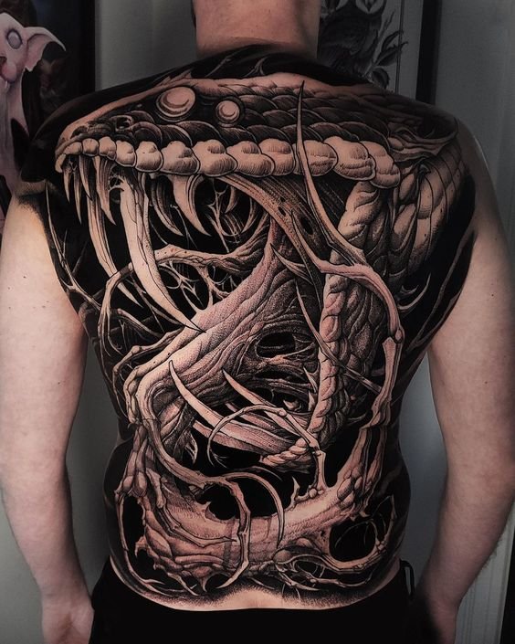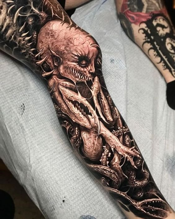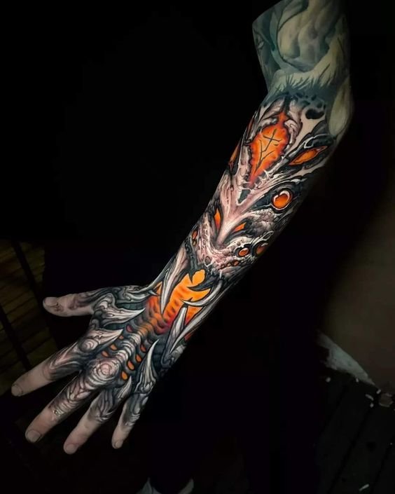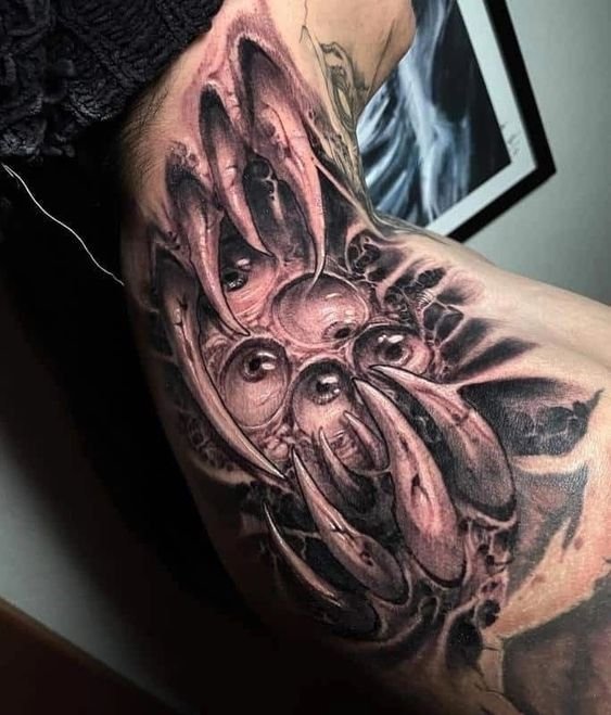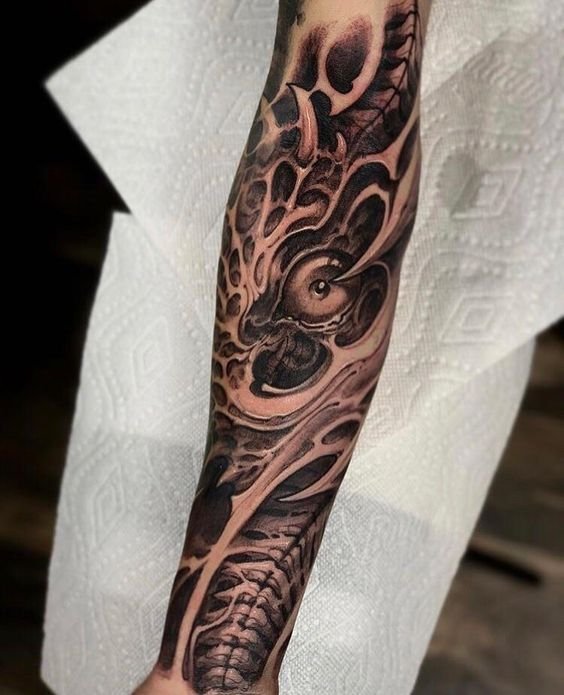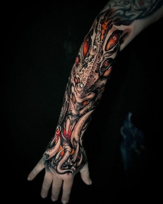 Unlike realism, bioorganic does not aim to accurately replicate the appearance of objects. Instead, it focuses on creating fantastical, even cosmic images that balance between reality and imagination. Tattoos in this style often feature: