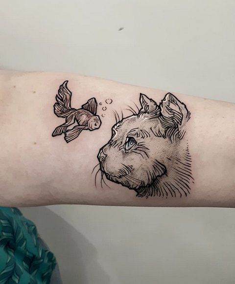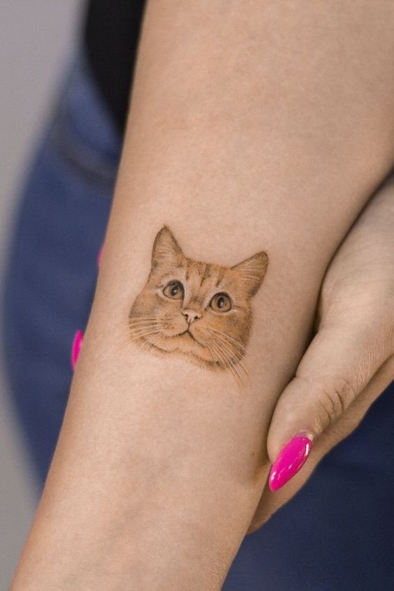 Cats choose when to be with a person and when to enjoy solitude. Such a tattoo may express the owner's desire to be independent, follow their own path, and value personal space. Yet, despite their independence, these animals can show deep attachment and love for their owner. A cat tattoo may symbolize love, warmth, and devotion, reflecting deep emotional bonds.