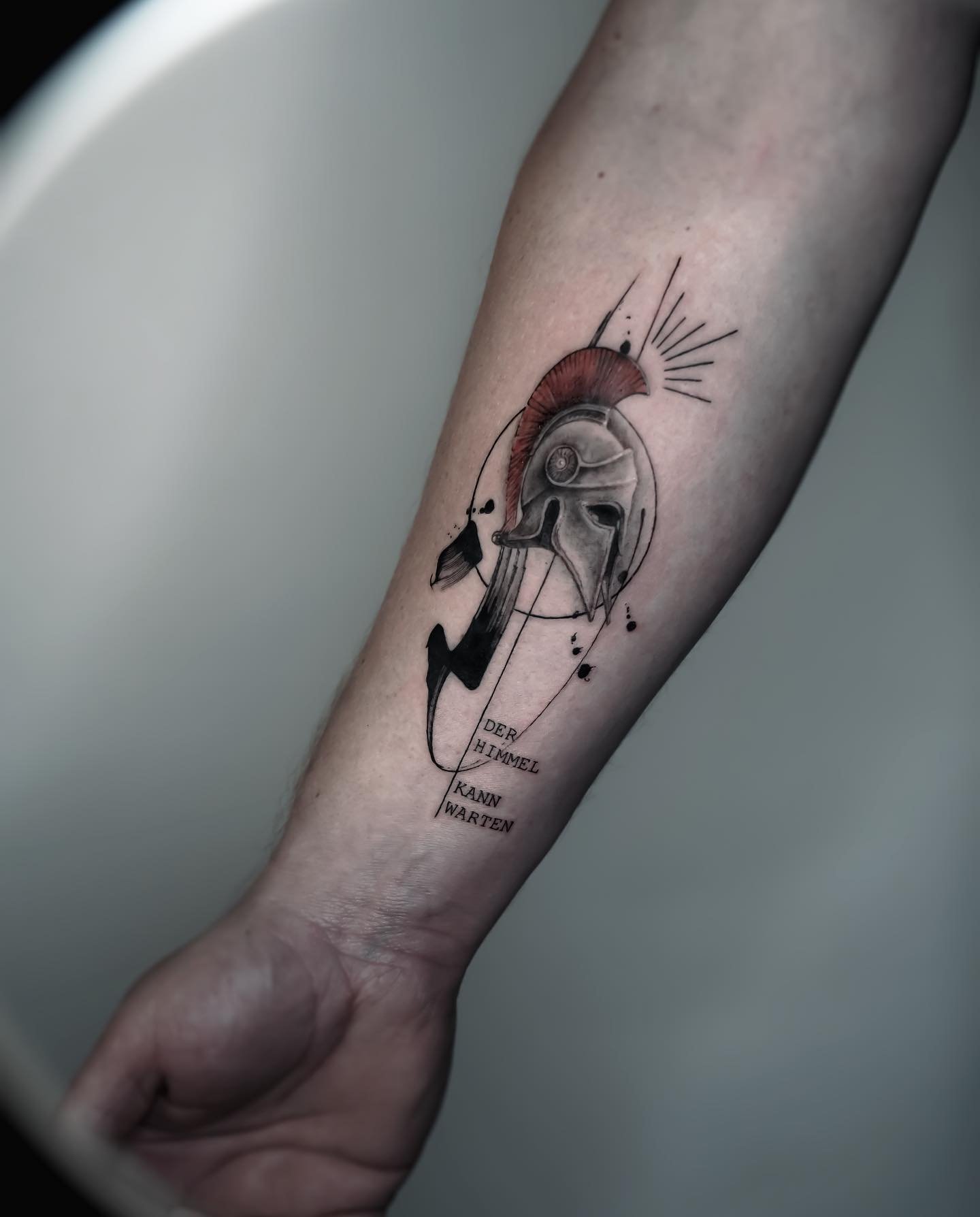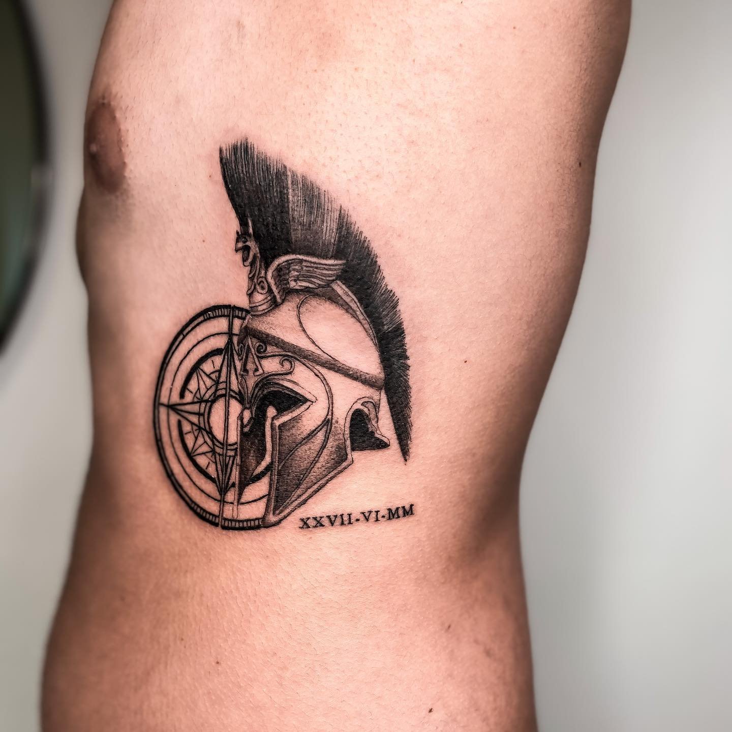 - One of the most recognizable symbols of Spartan culture is the warrior’s helmet. It represents not only military valor but also protection, readiness for battle, and resilience. A tattoo featuring a helmet is often associated with the defense of one’s ideals, family, and honor. This symbol is suitable for those who see themselves as protectors and leaders.