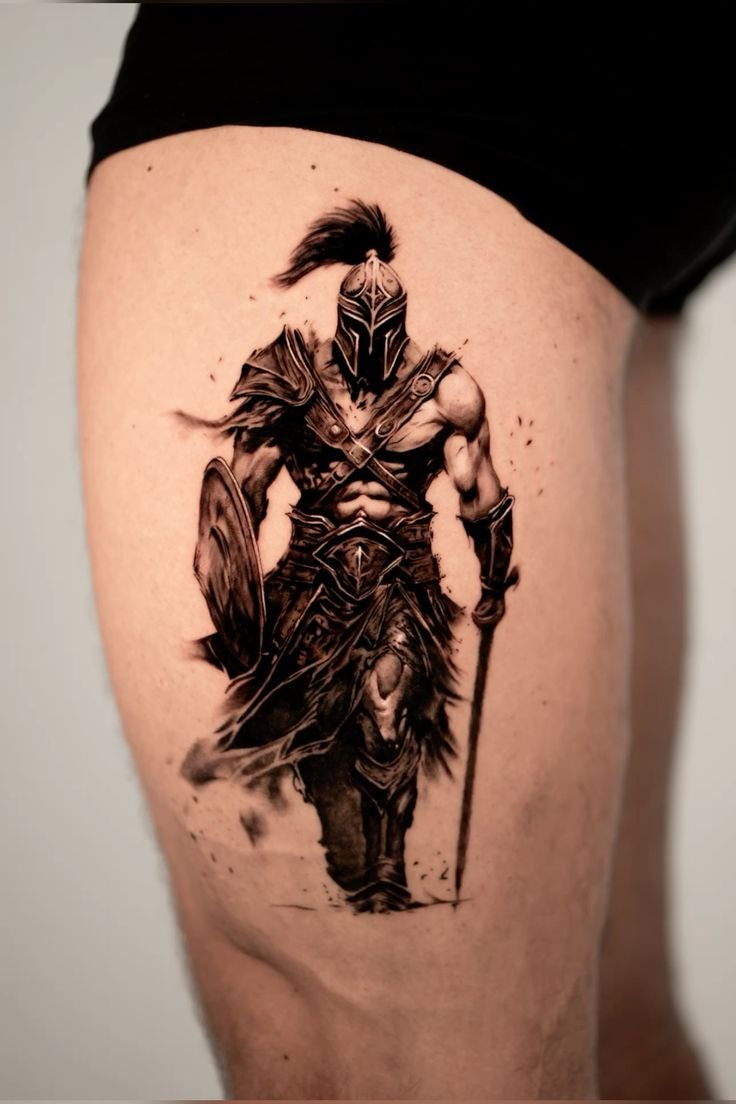 Spartans were known for their unbreakable spirit in battle, and a tattoo depicting warriors or their equipment can symbolize the wearer’s readiness to overcome life’s hardships without fear. - Resilience and Endurance