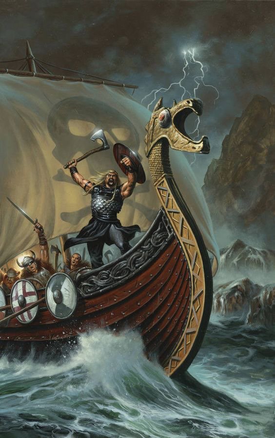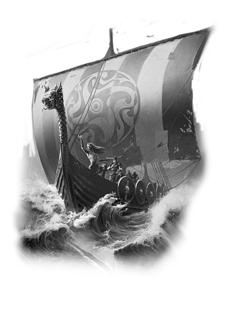 Vikings and ships, sea inhabitants, waves - means love for travel, research.
