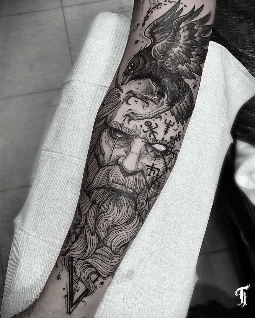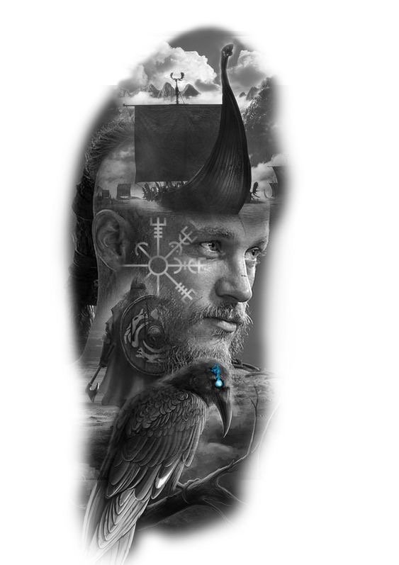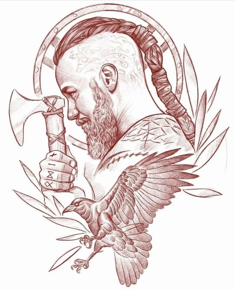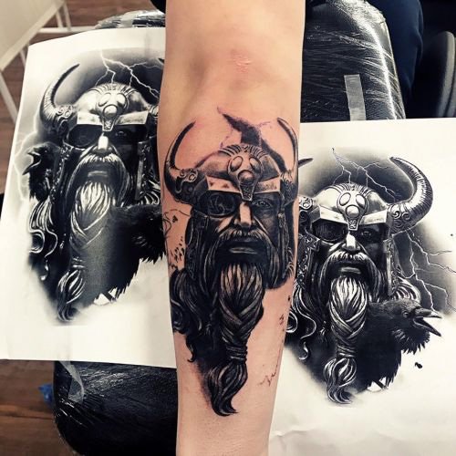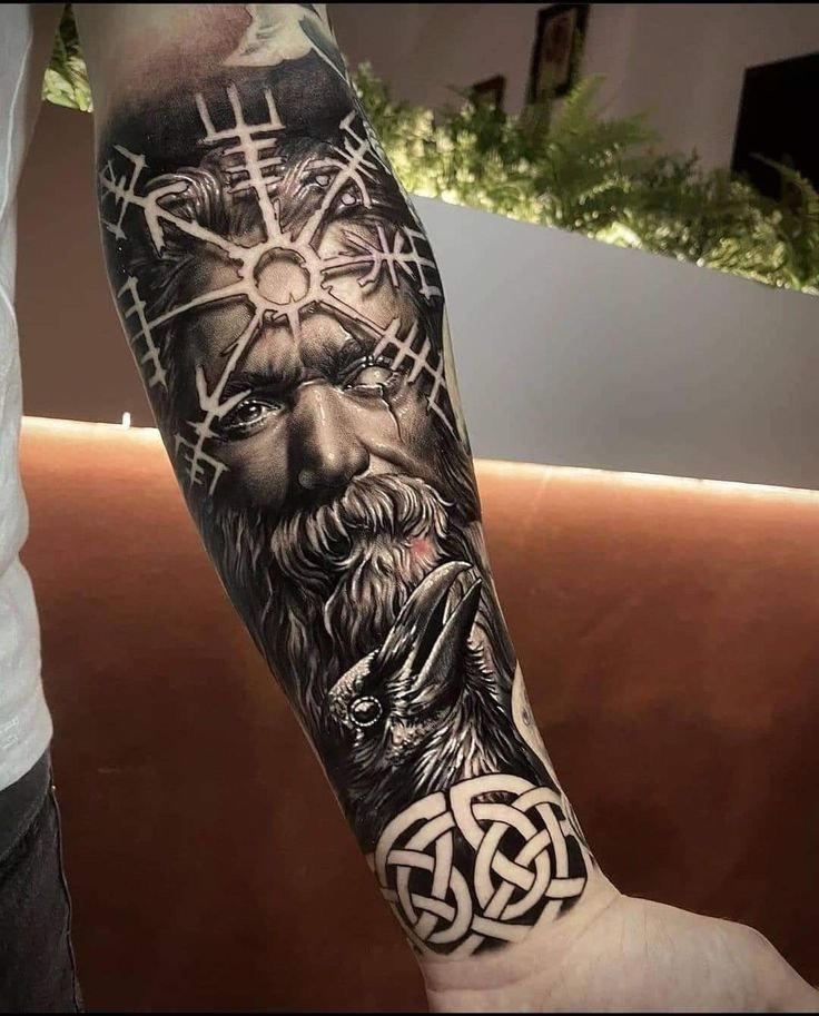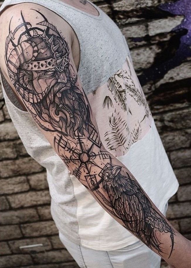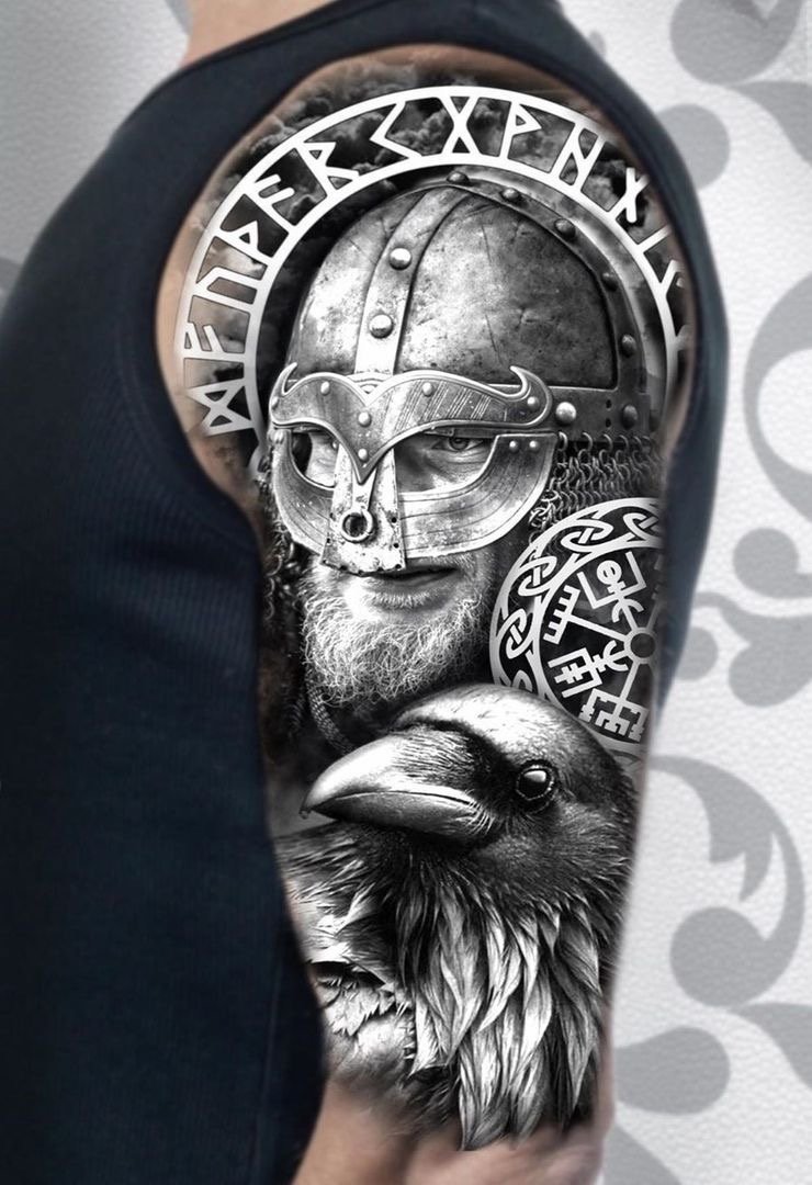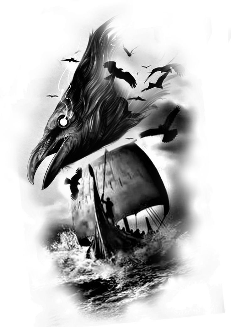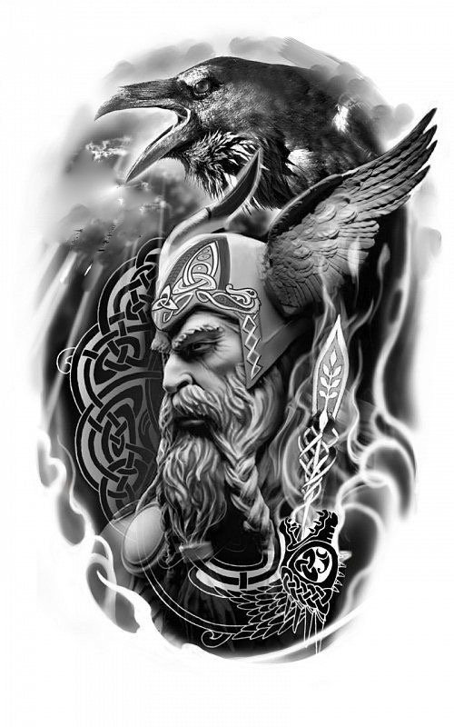 - Viking with raven is a sign of wisdom, loneliness and power. Effectively looks in black and white. Most often get on the hand.