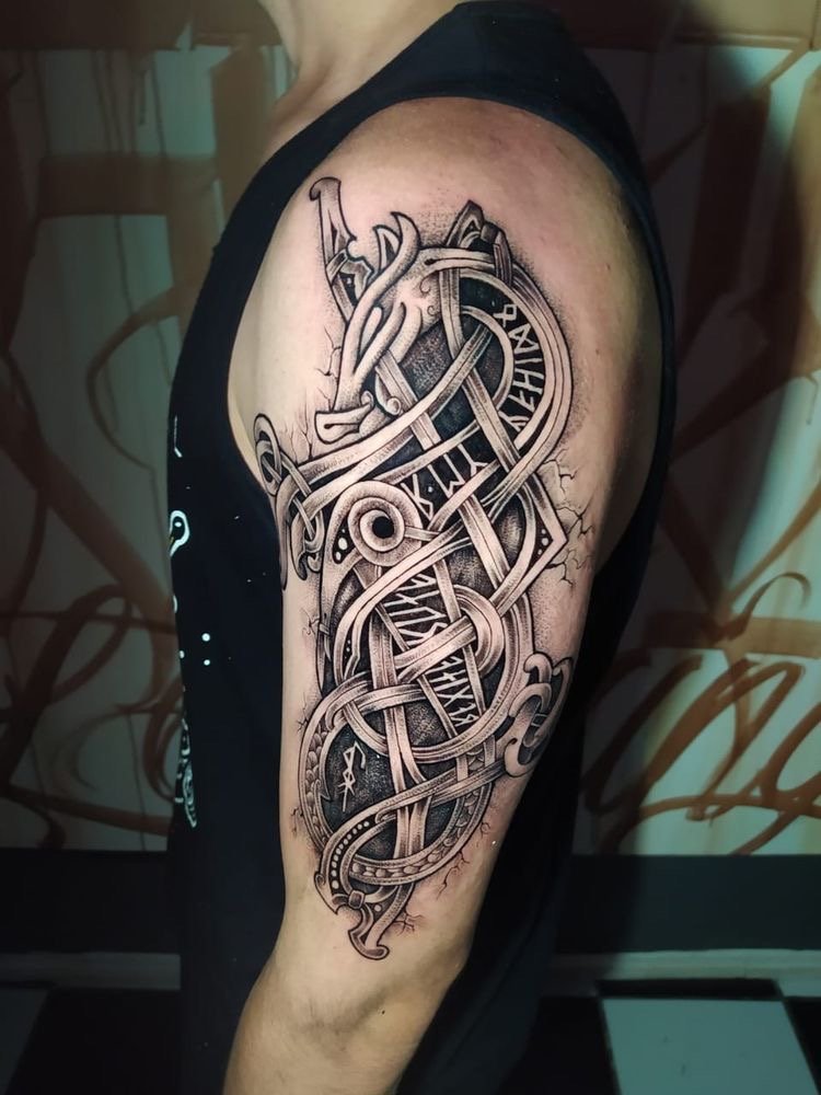 Among the great variety of body-images, the Viking tattoo sketch is in great demand. It is chosen by both men and women. The image is popular on different continents. But it originates from Scandinavian mythology. The Vikings themselves were ancient tribes that conquered new territories through bloodthirsty battles. They were characterized by cruelty, willpower, tenacity, special survival skills. These warriors always decorated their bodies with tattoos. And these body drawings looked terrifying to the enemy.