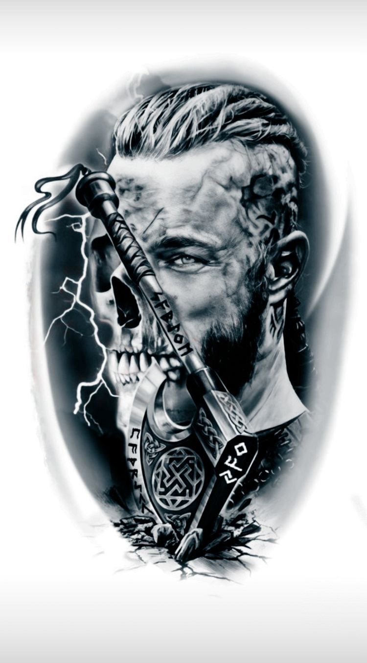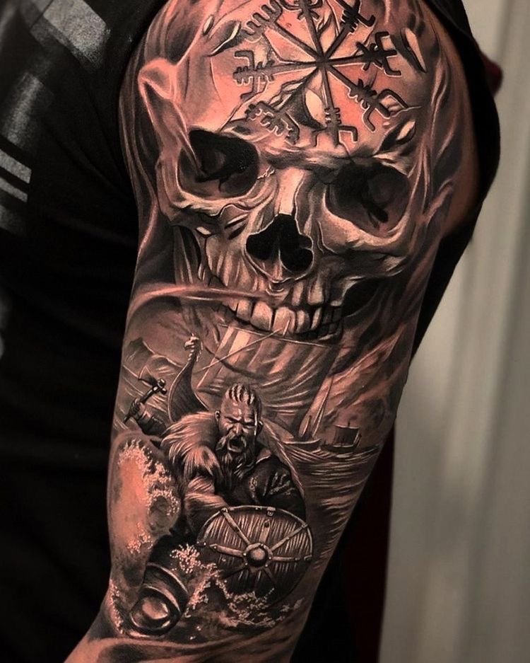 - Viking skull - shows strength of spirit, opposition of body and soul. In style realism looks spectacular, unusual, with taste.