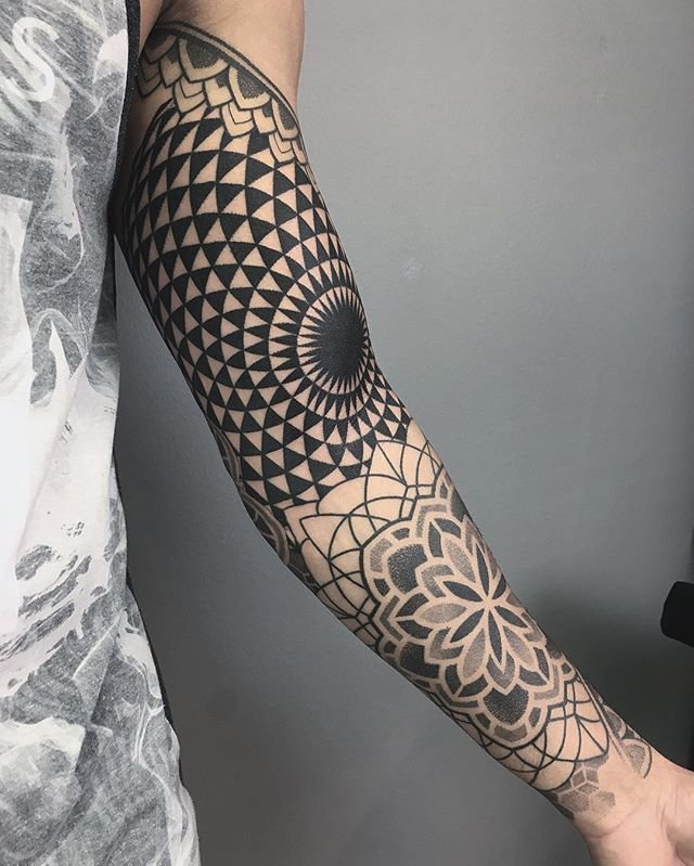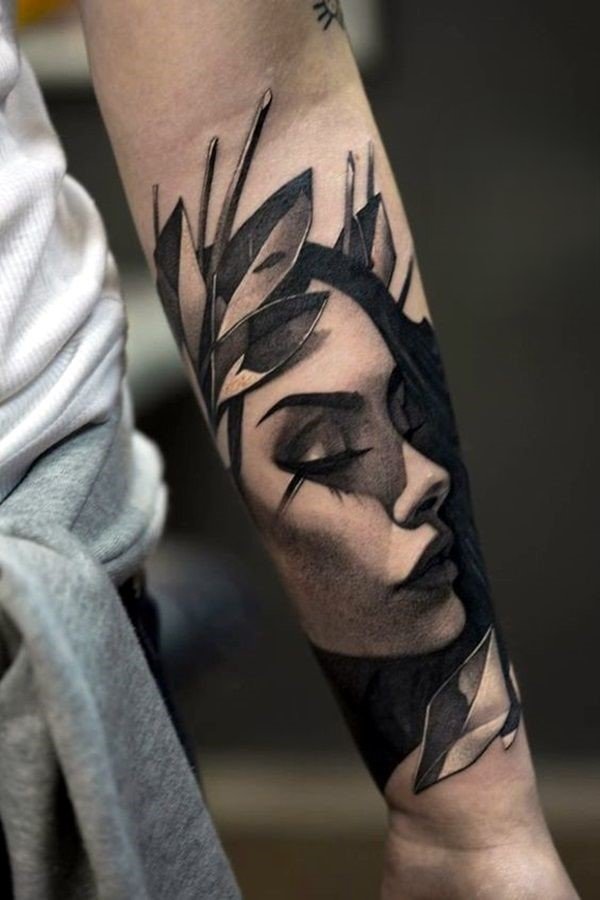 Black and grey tatuiruotės kuriamos naudojant tik juodą rašalą, kuris maišomas su vandeniu, kad būtų išgauta įvairių atspalvių paletė.