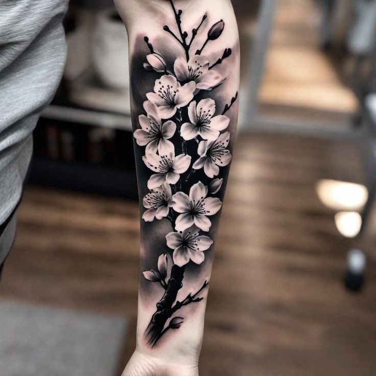 Moterims black and grey tatuiruotės dažnai tampa subtilios elegancijos simboliu.