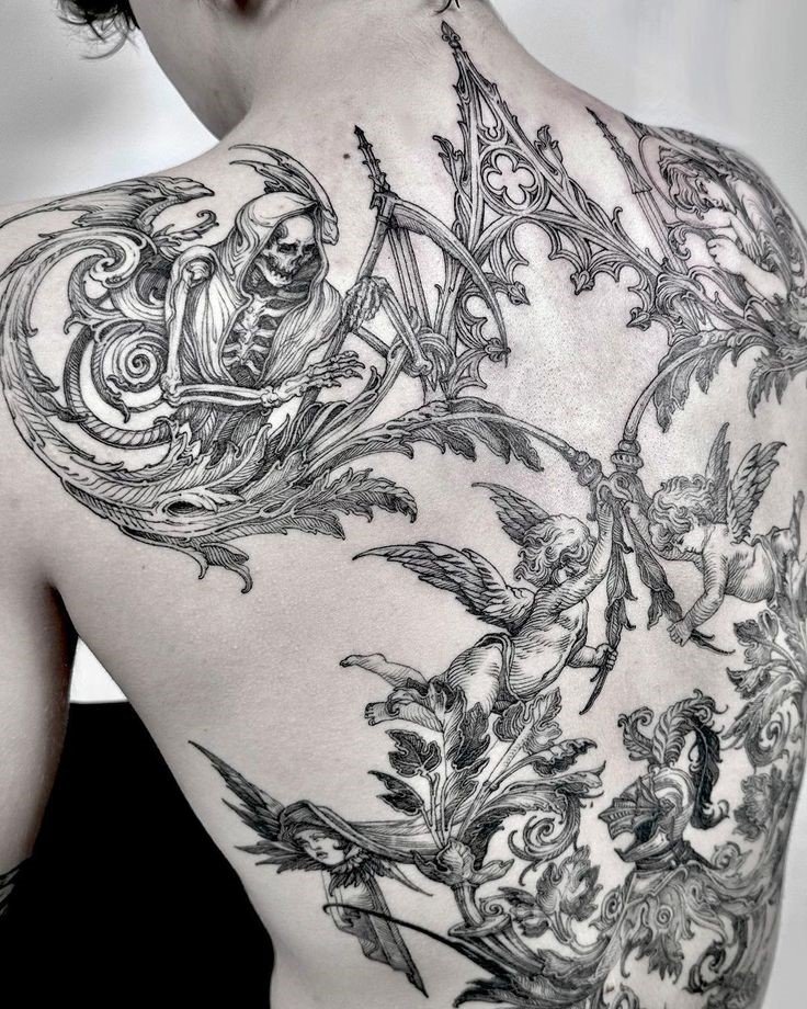Vyrų tarpe black and grey stilius ypač populiarus dėl galimybės kurti stiprius ir įspūdingus dizainus.