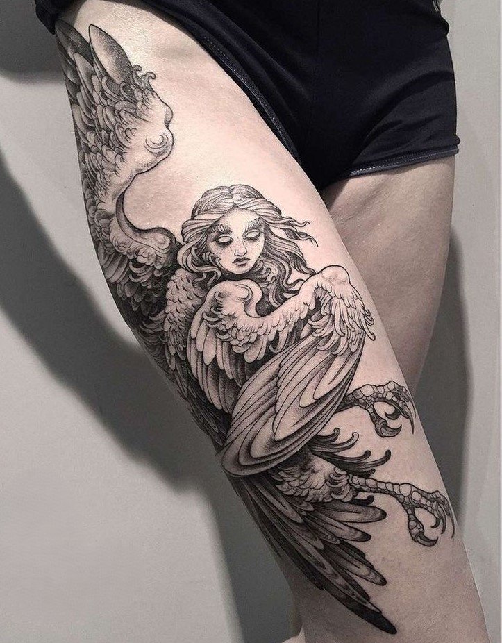 - Blauzdos ir šlaunys: puikus pasirinkimas vidutinio dydžio tatuiruotėms, kurios subtiliai dera prie kūno linijų.