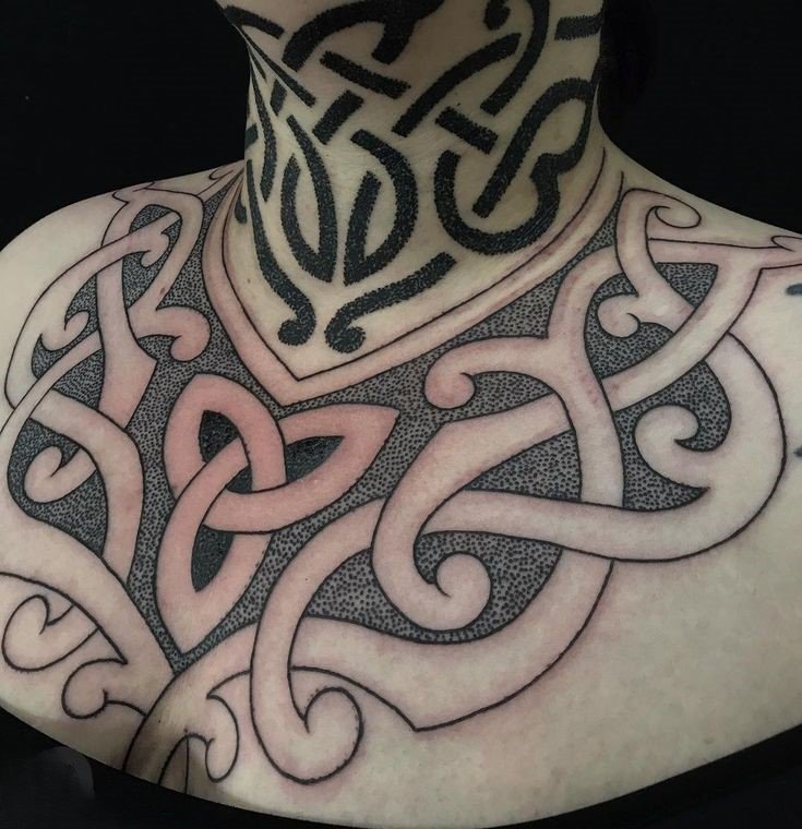 - Krūtinė: Simetriški raštai, ypač keltų kryžiai, atrodo nuostabiai ant krūtinės, sukuriantys skydo efektą, saugantį širdį.
