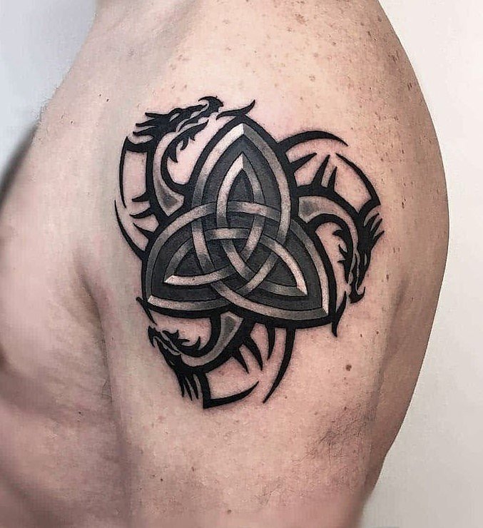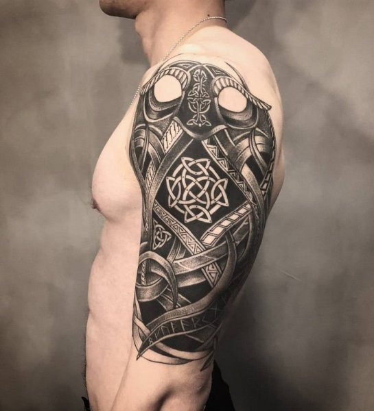 Vyrai dažnai renkasi didelius keltų mazgus ir kryžius, pabrėždami jėgą ir vyrų drąsą. Šie raštai puikiai atrodo ant plačių nugarų ar pečių, simbolizuodami apsaugą ir dvasios jėgą.