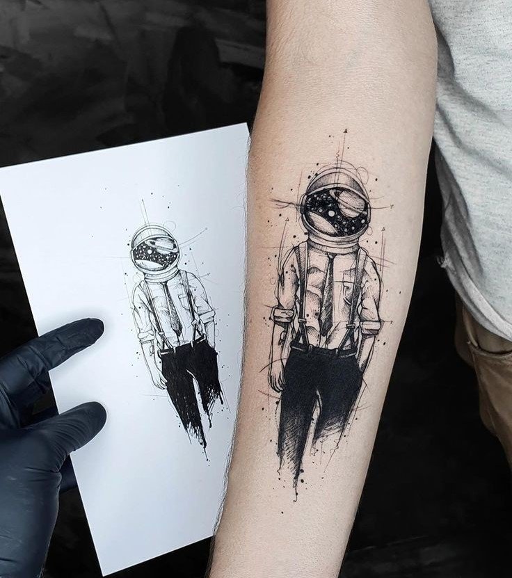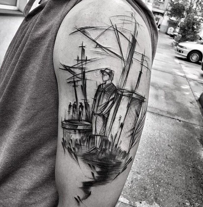 Vyrams sketch stiliaus tatuiruotės dažnai tampa stiprybės ir kūrybiškumo simboliu.