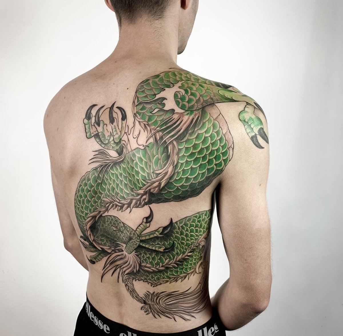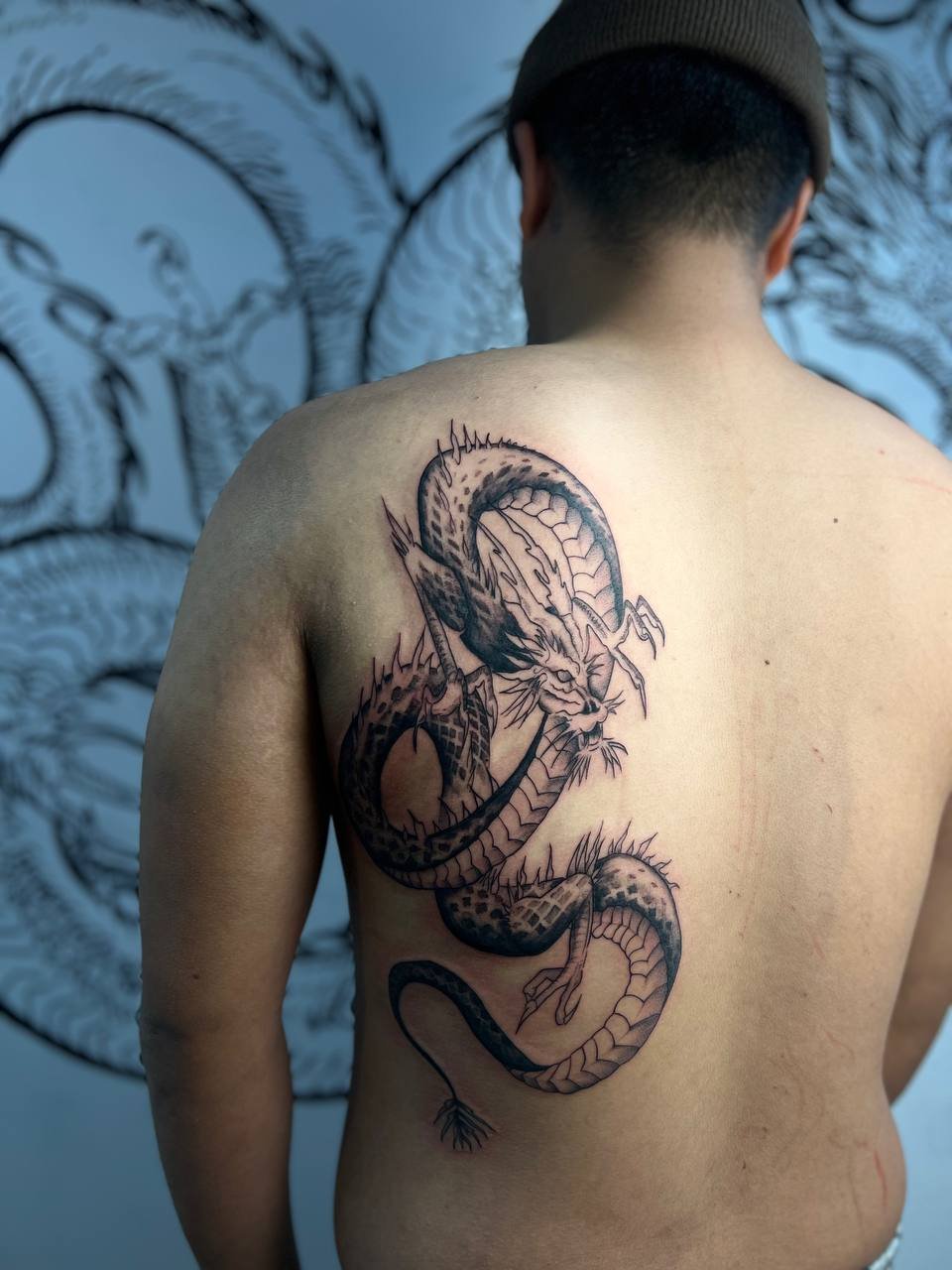 - Mitinės būtybės, tokios kaip drakonai, feniksai ir vienaragiai, prideda mistikos ir magijos. Jie simbolizuoja jėgą, atgimimą ir magiją, paversdami jūsų nugarą į pasakų pasaulį.