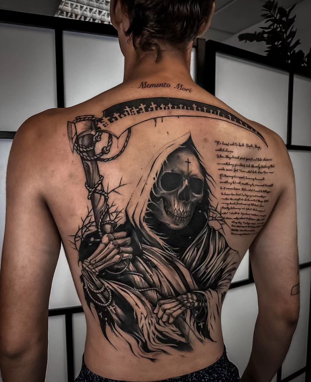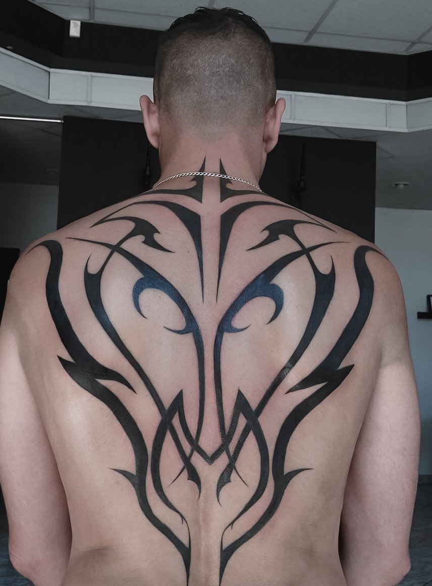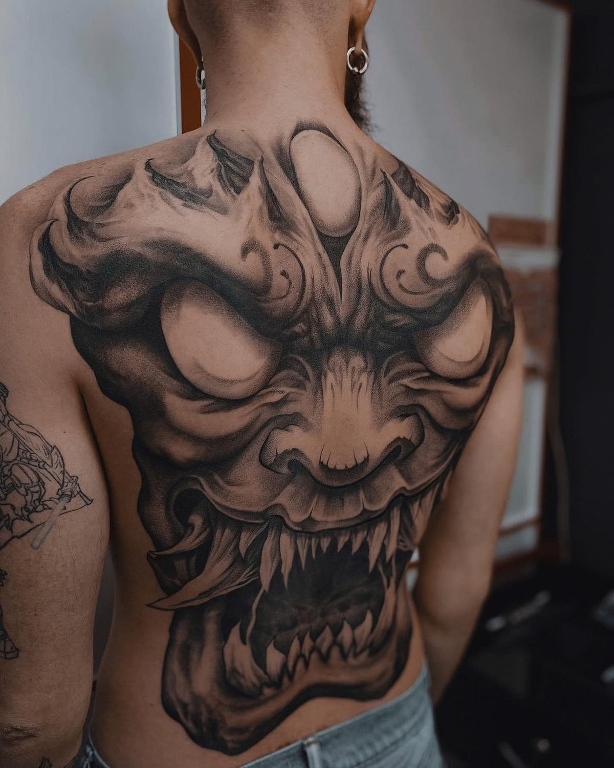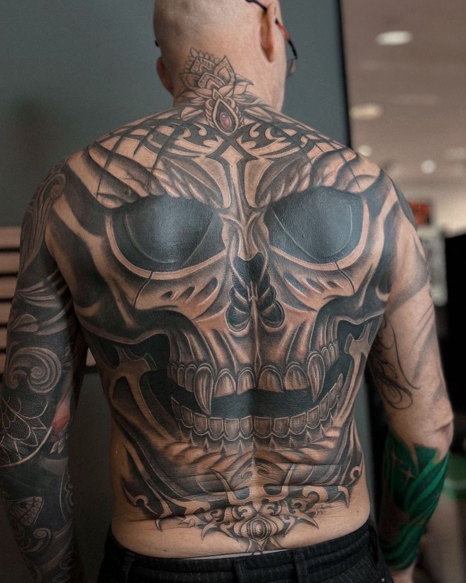 Vyriškos tatuiruotės ant nugaros dažnai išsiskiria brutalumu ir mastu.