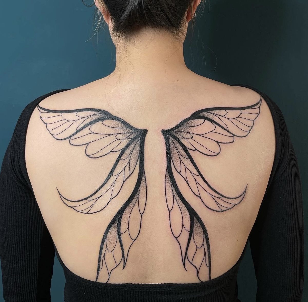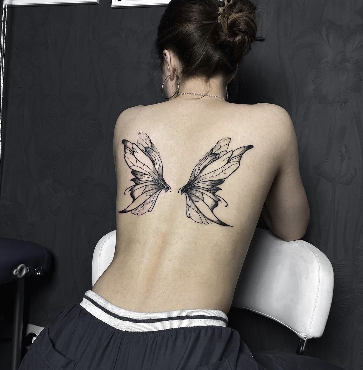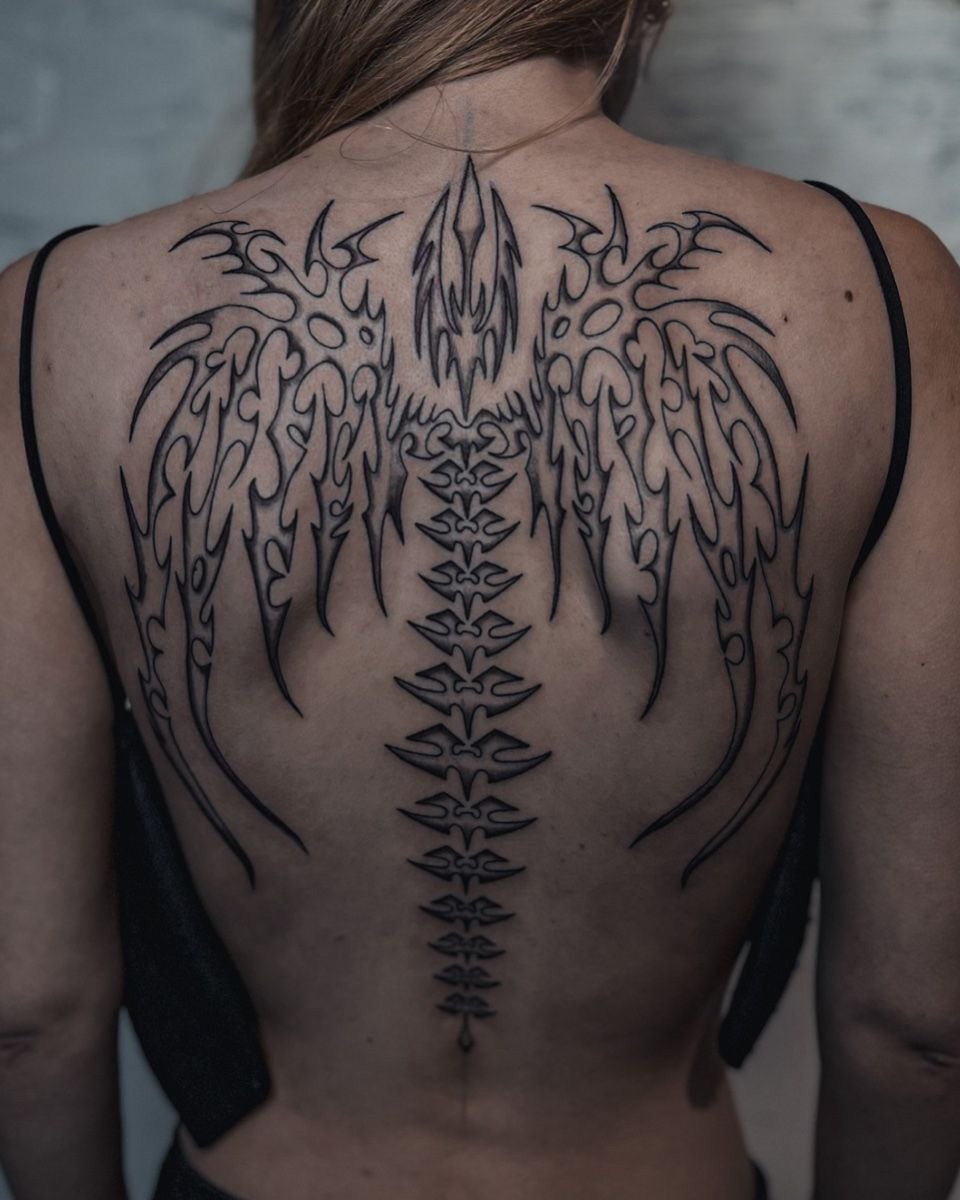- Sparnai – angelų ar paukščių, jie perteikia laisvės siekį, dvasinį tobulėjimą ir apsaugą. Šios tatuiruotės sukuria skrydžio efektą, apimdamos visą nugarą.