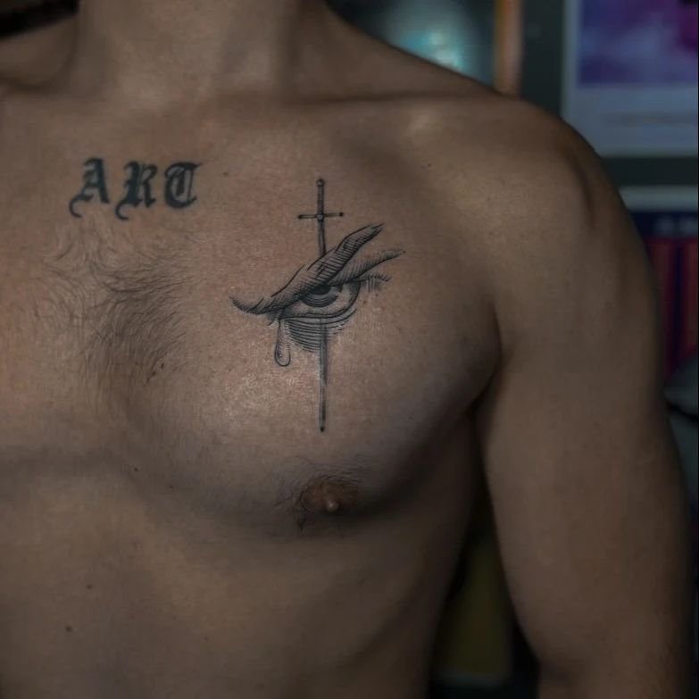 Krūtinės tatuiruotė yra menas, reikalaujantis drąsos.