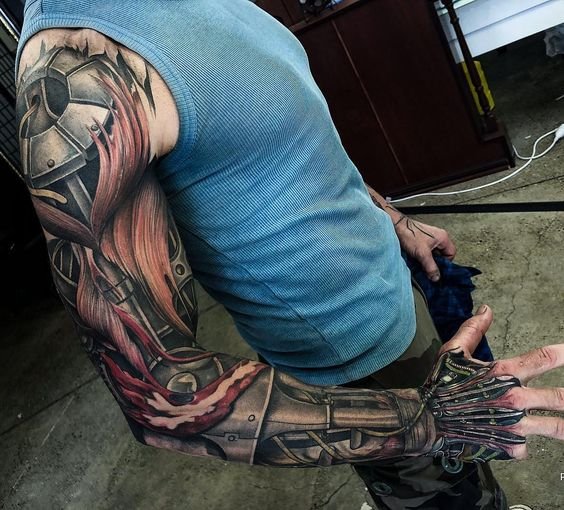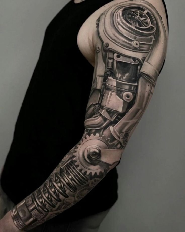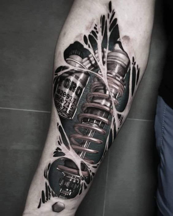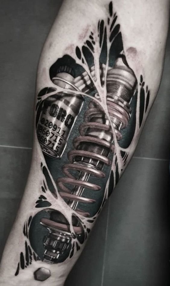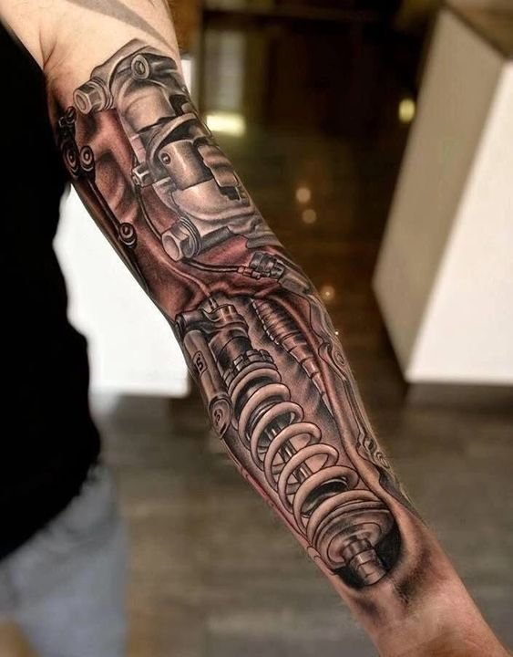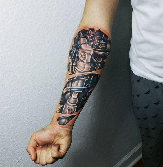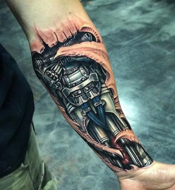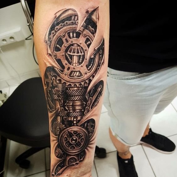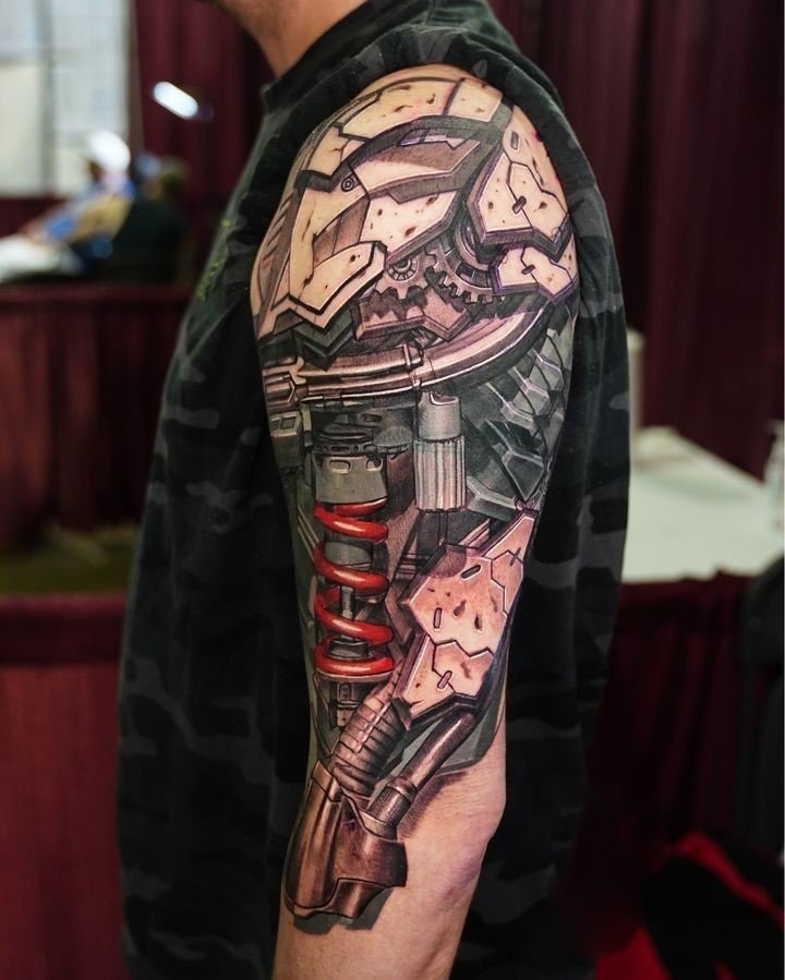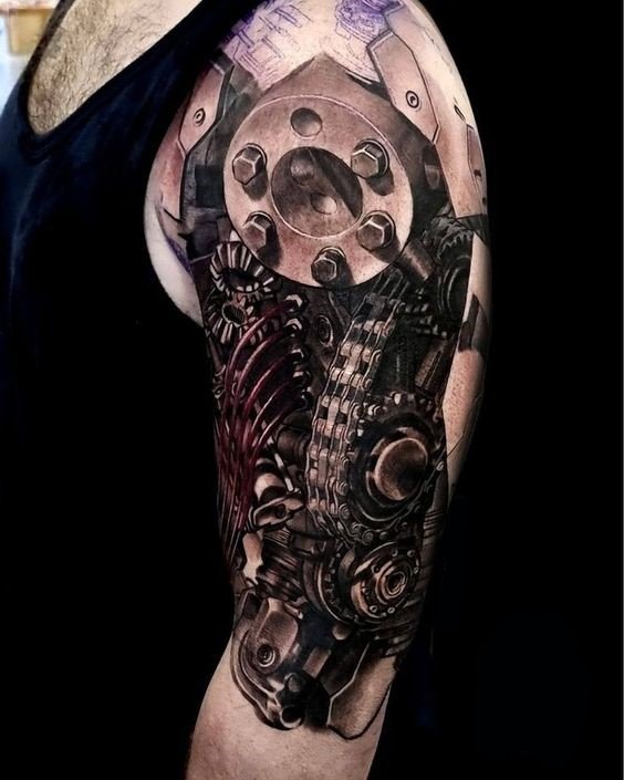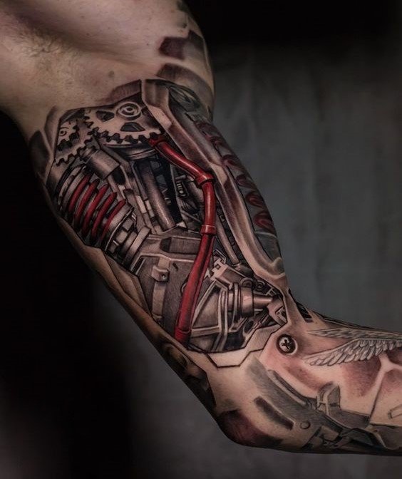 Populiariausia biomechanikos kūno vieta yra petys, dėl natūralaus bicepso reljefo tatuiruotė atrodo dar tikroviškiau.