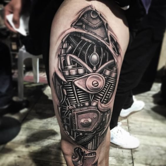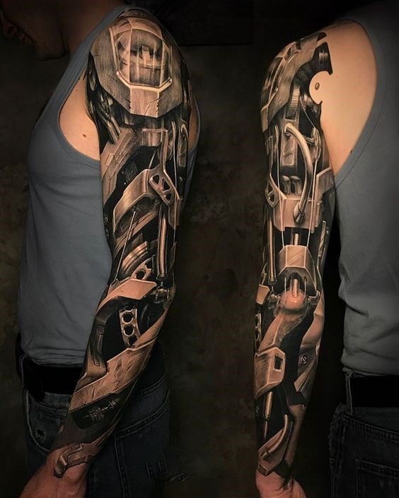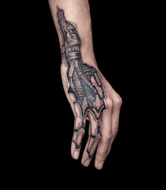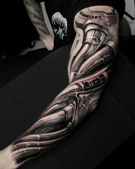 Biomechanikos tatuiruočių eskizai yra netiesioginės Hanso Gigerio darbų kopijos. Jis yra garsus šveicarų menininkas, jo darbai gerai atpažįstami visame pasaulyje. Net jei asmeniškai nematėte jo paveikslų, neabejotinai esate matę filmą "Svetimas", kuriame Hansas Gigeris sukūrė mechaninių ateivių įvaizdį.
