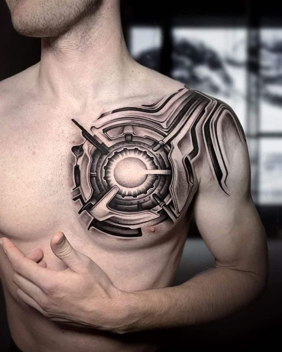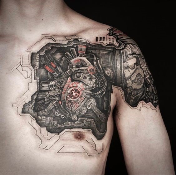 Neįtikėtinai veiksmingai atrodo tatuiruočių biomechanika krūtinės srityje, kai galite pamatyti širdies mechanizmą. Dažnai vaizduojama, kad pati širdis yra sudaryta iš mechaninių juostų, užrakintų spyna. Šis atvaizdas byloja apie žlugusią meilę ir apie tai, kad jį nešiojančiojo širdis dabar yra paslėpta nuo pasaulio.