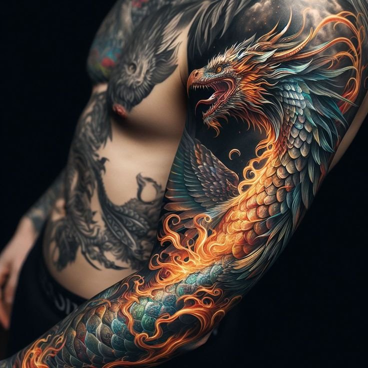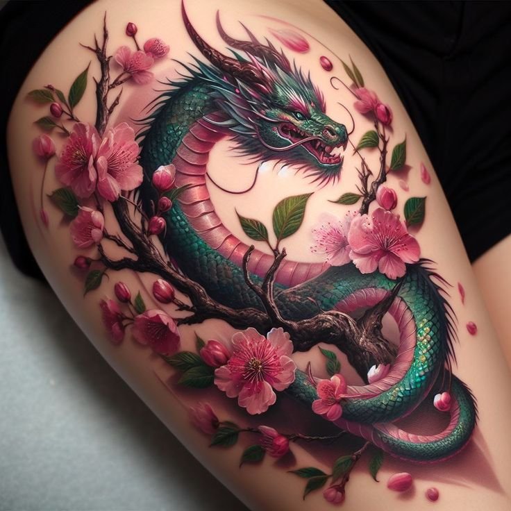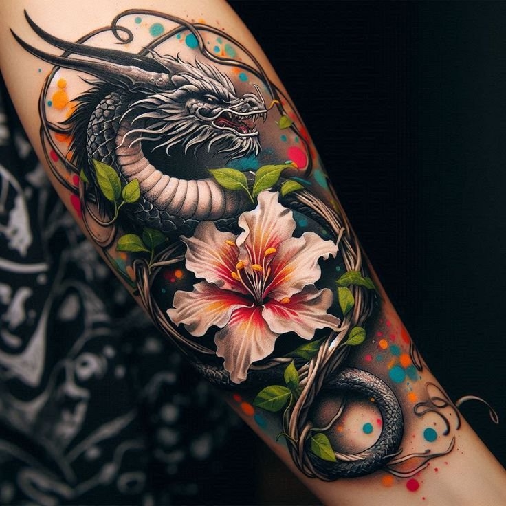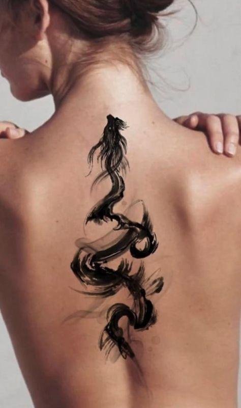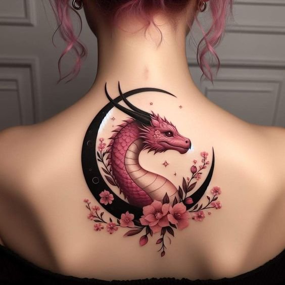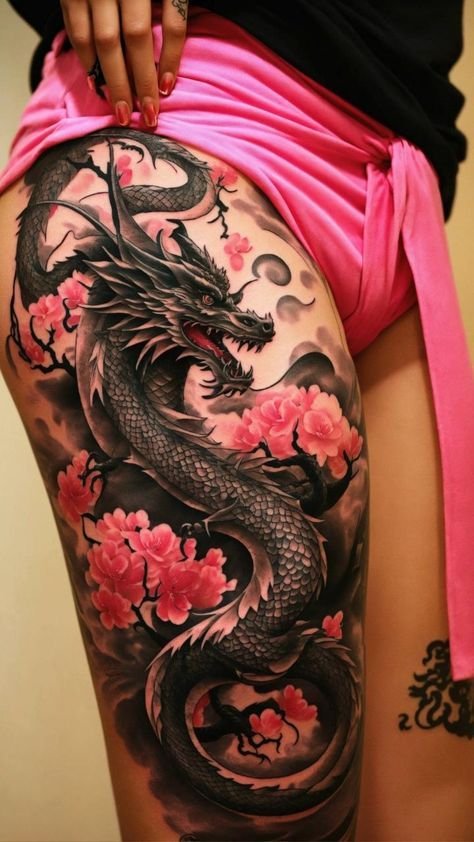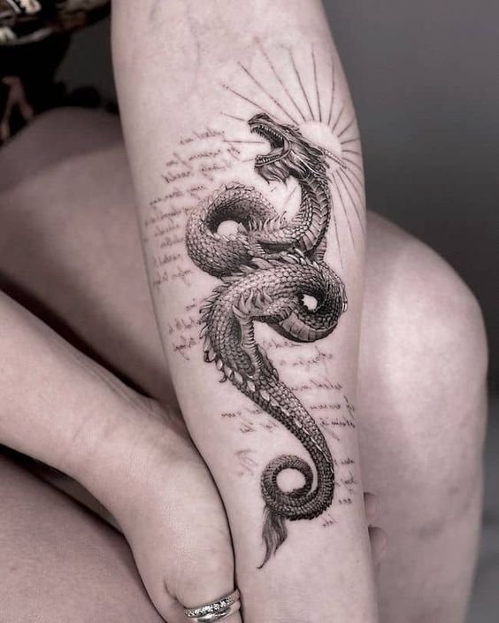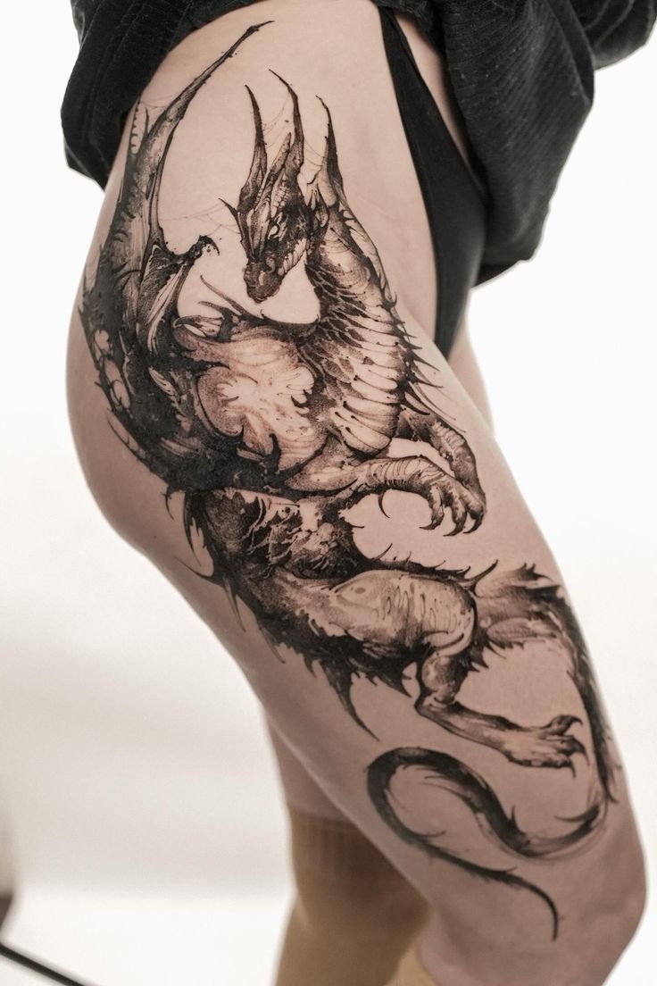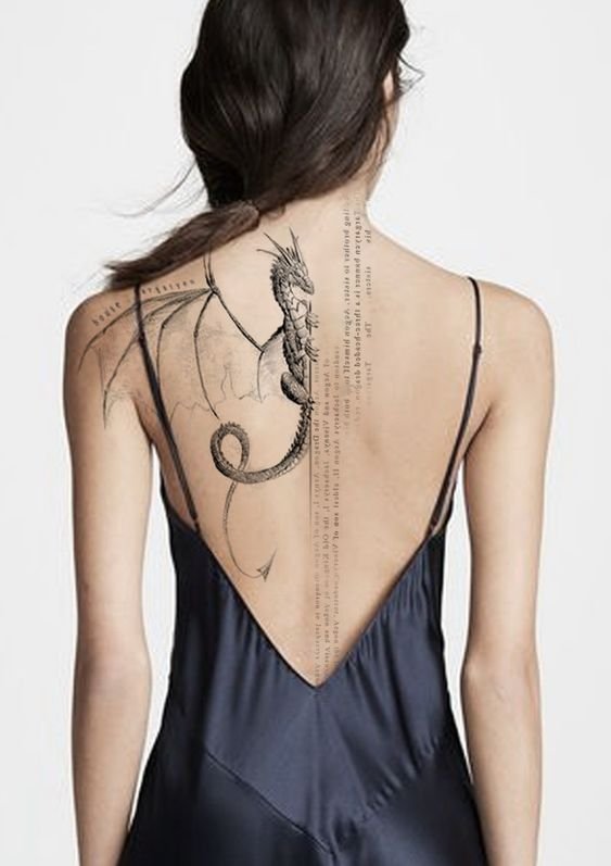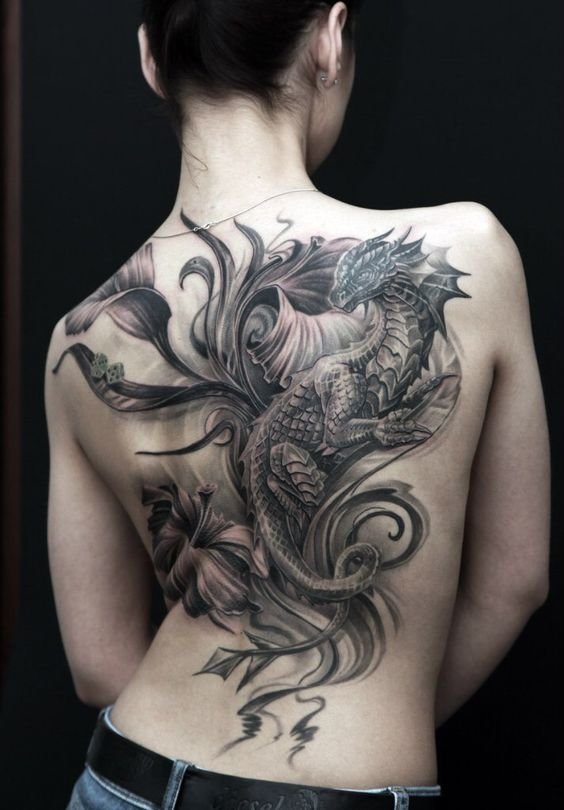Moteriškos tatuiruotės su drakonu yra galingas simbolis, apjungiantis grožį, jėgą ir mistiką.