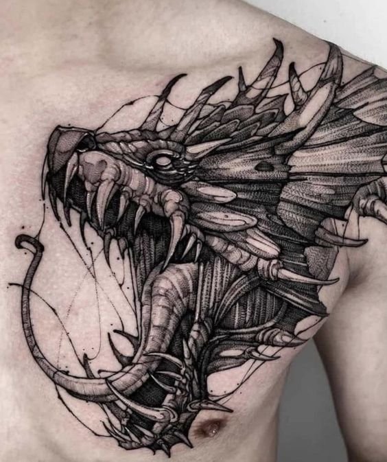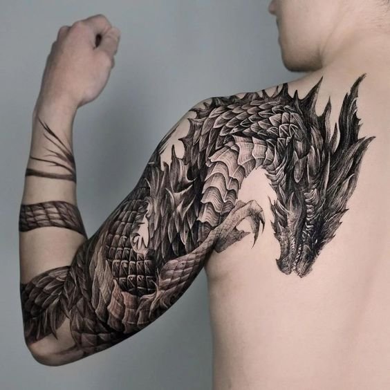 Drakono tatuiruotė ant vyro kūno gali simbolizuoti ne tik fizinę jėgą, bet ir dvasios stiprybę, išmintį ir kilnumą.