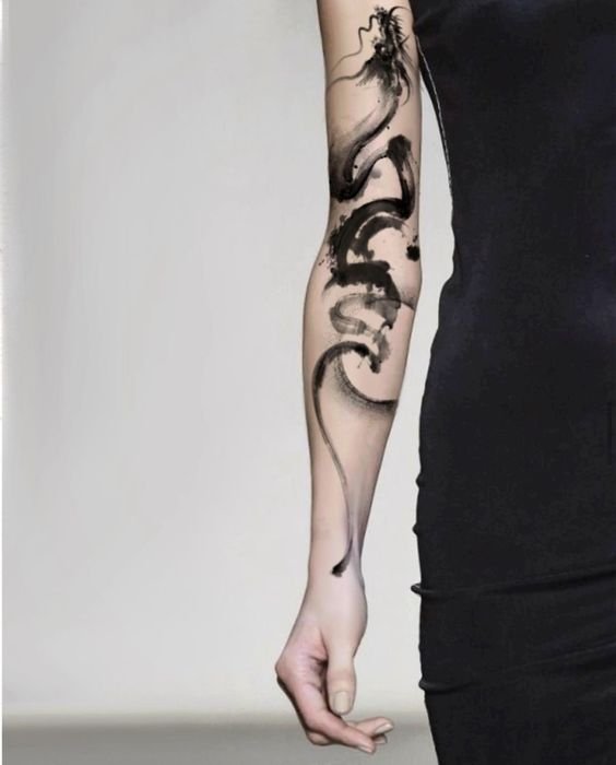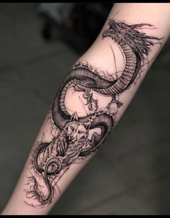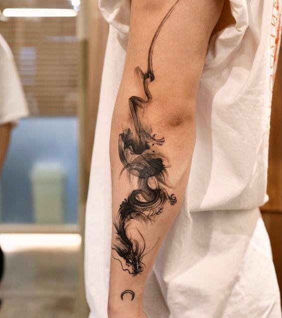 - Rankos (rankogaliai ir bicepso sritis): Drakonai ant rankų demonstruoja jų savininko jėgą ir galią. Rankogaliai dažnai pasirenkami mažesniems ir dinamiškesniems drakonų vaizdams.