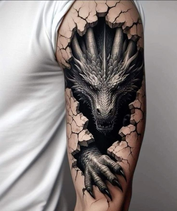 - Realizmas: Realizmo stiliaus tatuiruotės siekia kuo tiksliau atkurti drakonų išvaizdą, tarsi jie būtų tikri. Tai reikalauja aukšto tatuiruotojo meistriškumo, kad būtų pasiekta vaizdo detalizacija ir gilumas.