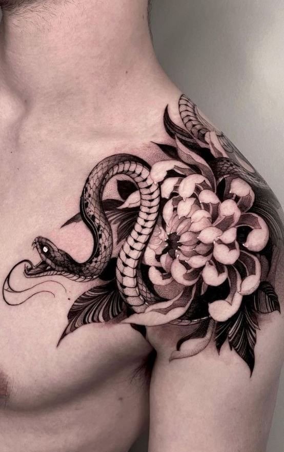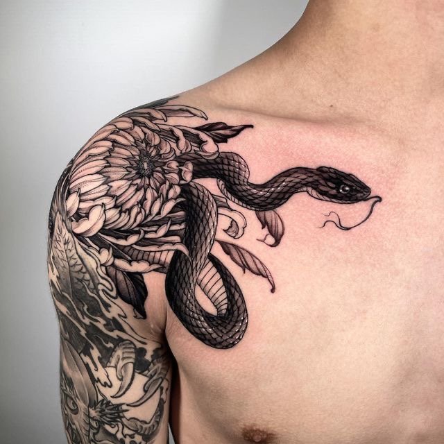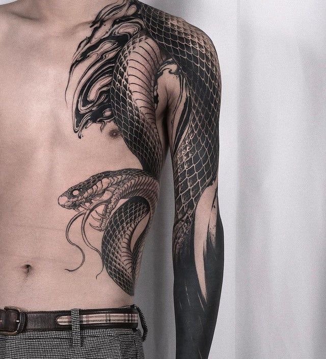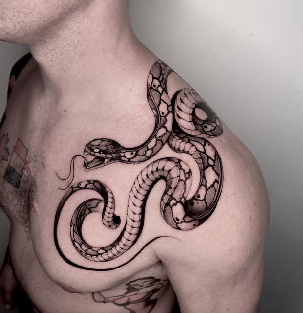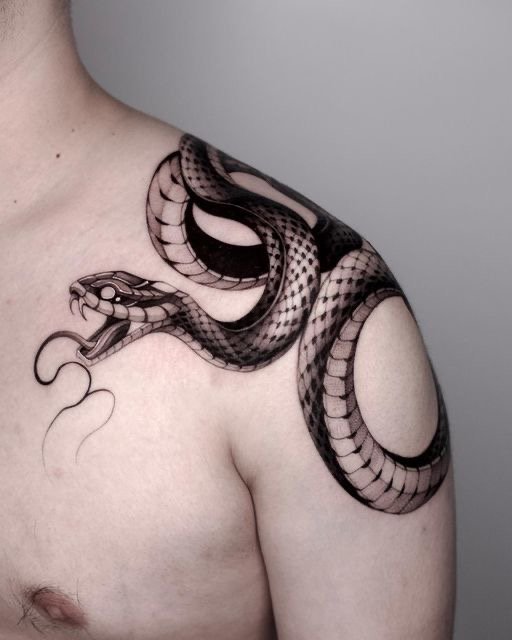 - Ant sprando, kaklo, ausies gražiai atrodo nespalvotas Gyvatės vaizdas.