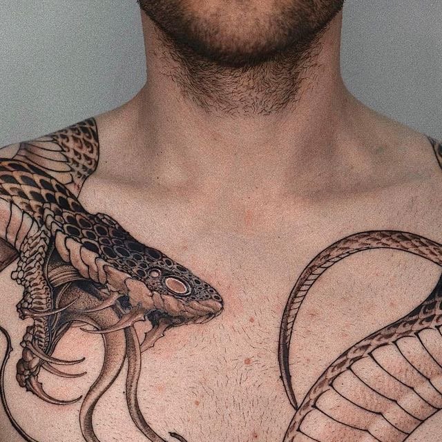 - Populiarūs Gyvatės tatuiruotės eskizai ant krūtinės, šonkaulių, kulkšnies, pirštakaulių.