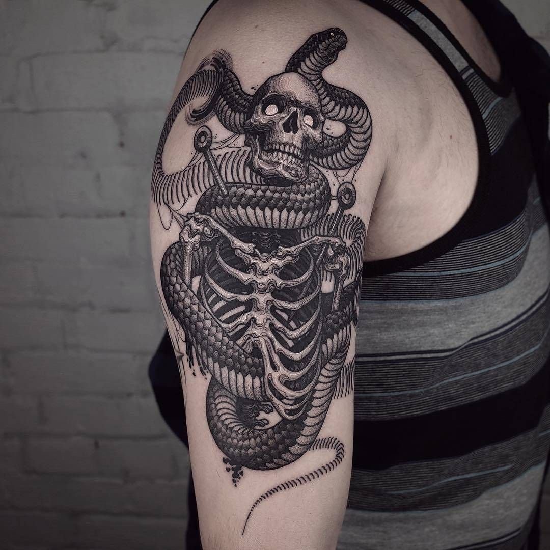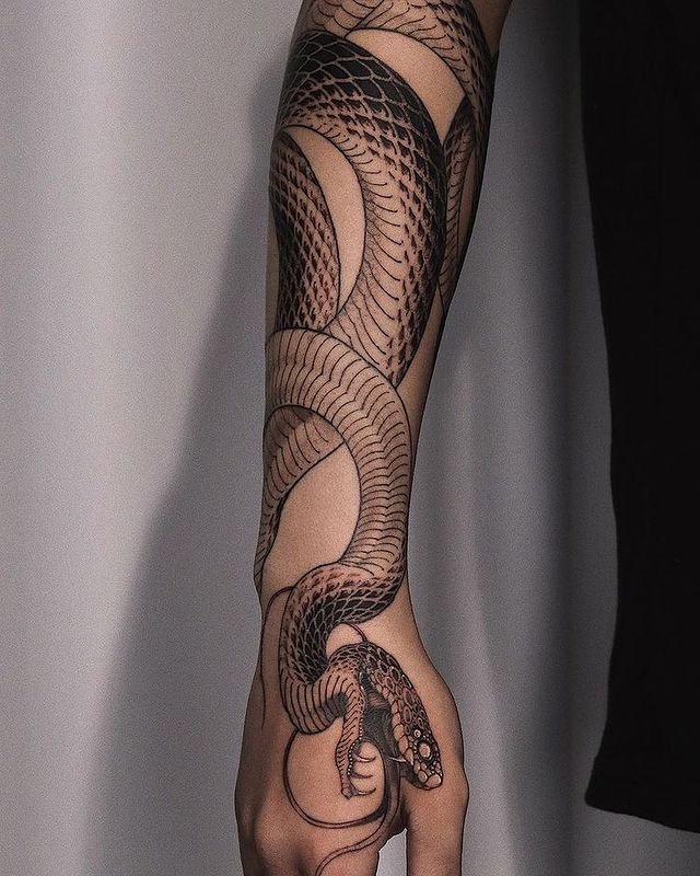 Jis vienodai gražiai atrodo ant vyro ir moters kūno, papuoš bet kurią kūno dalį – ranką, petį, nugarą, kaklą, šlaunį ir kitas zonas. Atskleis žmogaus charakterį, parodys jo asmeniškumą, pirmenybes. Gyvatės tatuiruotės eskizas – puikus sprendimas bet kokio amžiaus, tautybės žmonėms. Tas stilinga, patrauklu ir turi prasmę.