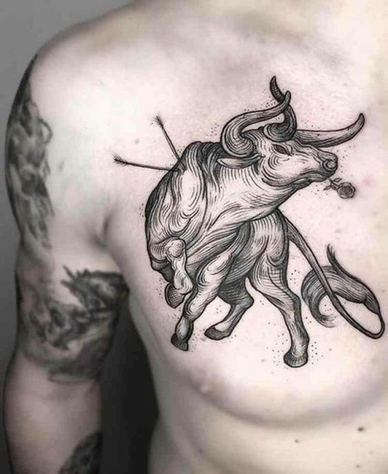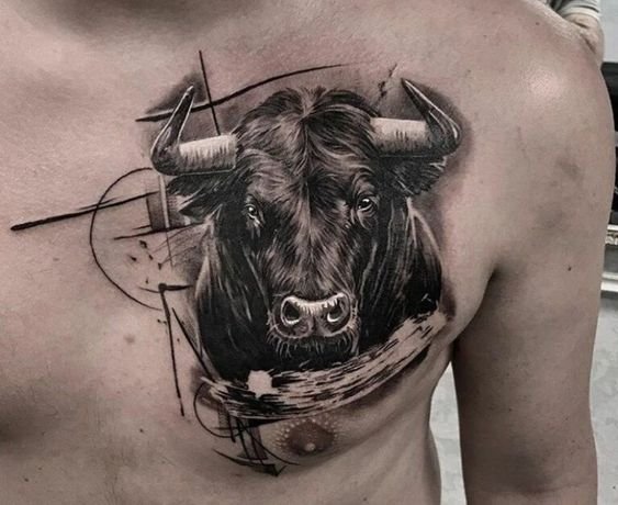 - Krūtinė: Tatuiruotė ant krūtinės pabrėžia stiprybę ir ryžtą. Tai vieta ypač populiari tarp vyrų, nes jaučio atvaizdas ant krūtinės gali simbolizuoti apsaugą ir širdingumą. Tatuiruotė gali būti tiek simetriška, tiek užimti vieną krūtinės pusę, priklausomai nuo savininko pageidavimų.