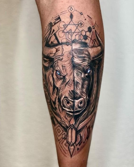 Jaučio tatuiruotė simbolizuoja galią, ryžtą ir drąsą.