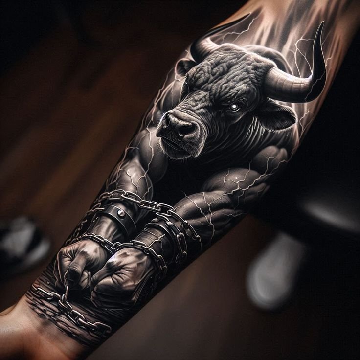 - Vyrams: Vyrų dažniausiai pasirenkamos tatuiruotės su jaučiu pabrėžia jų stiprybę, vyriškumą ir ryžtą. Jautis siejamas su fizine galia ir ištverme, todėl jis yra idealus simbolis vyrams, siekiantiems pabrėžti savo vidines ir išorines savybes. Klasikinis vyriškos tatuiruotės su jaučiu variantas yra realistiškas atvaizdas, kuris detaliai perteikia gyvūno raumenis ir galią. Populiarios vietos tokioms tatuiruotėms yra nugara, krūtinė ir pečiai, kas leidžia sukurti galingą ir įspūdingą įvaizdį.