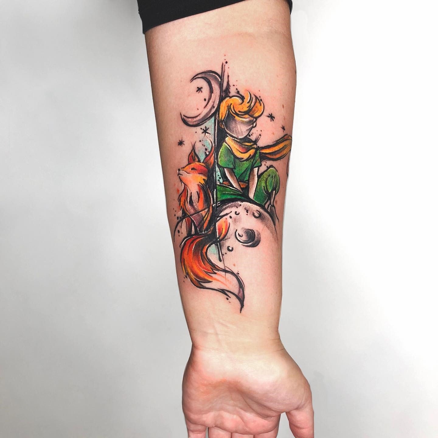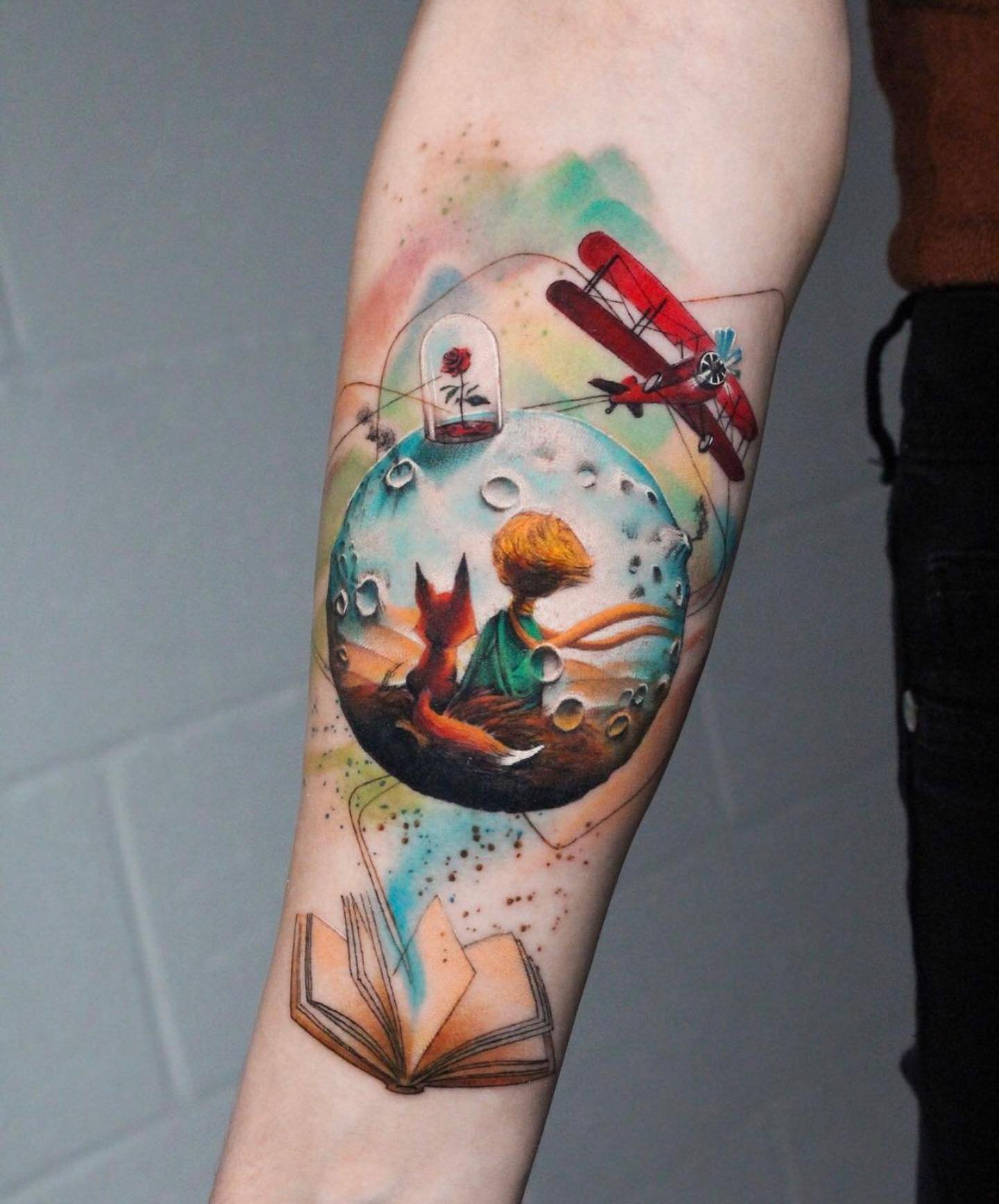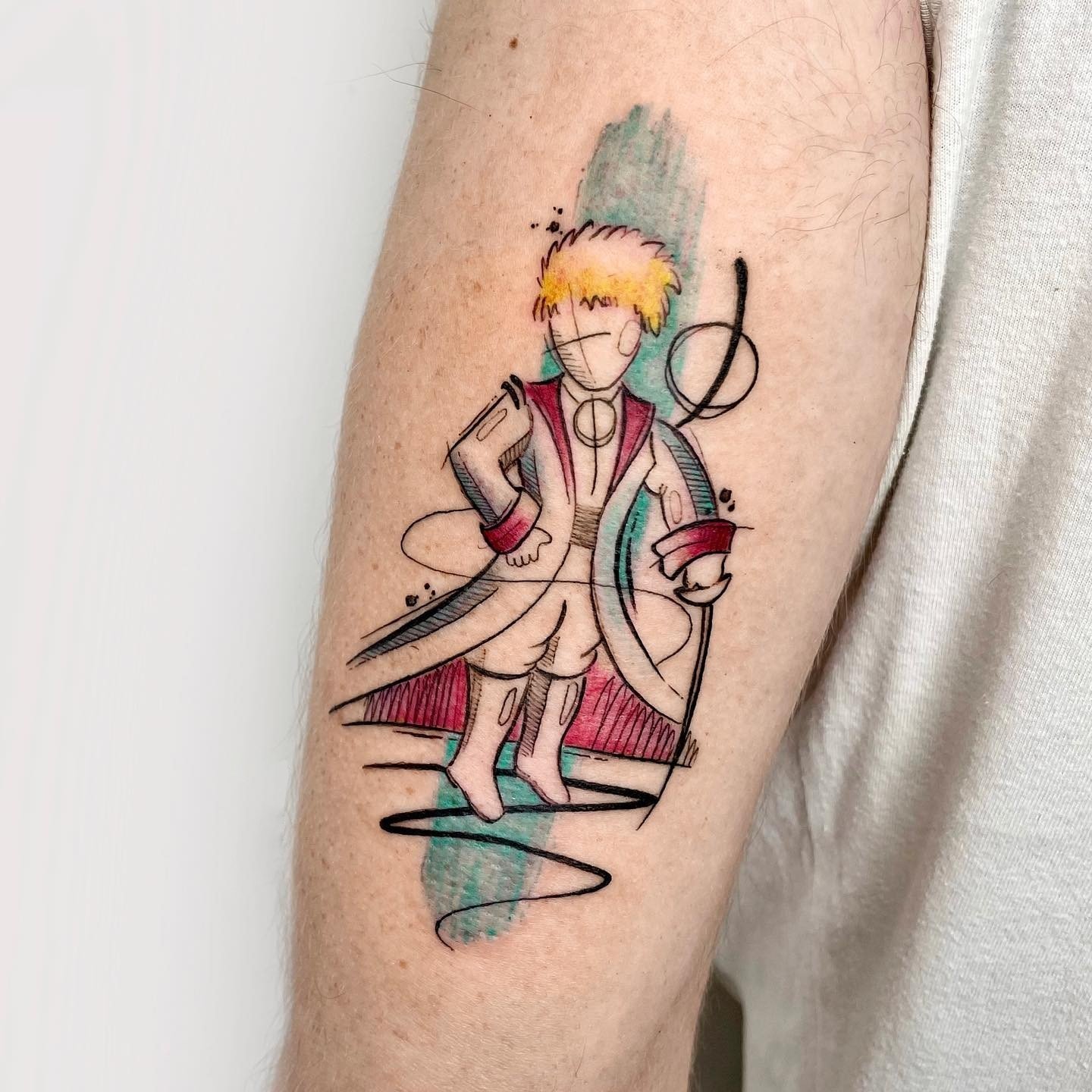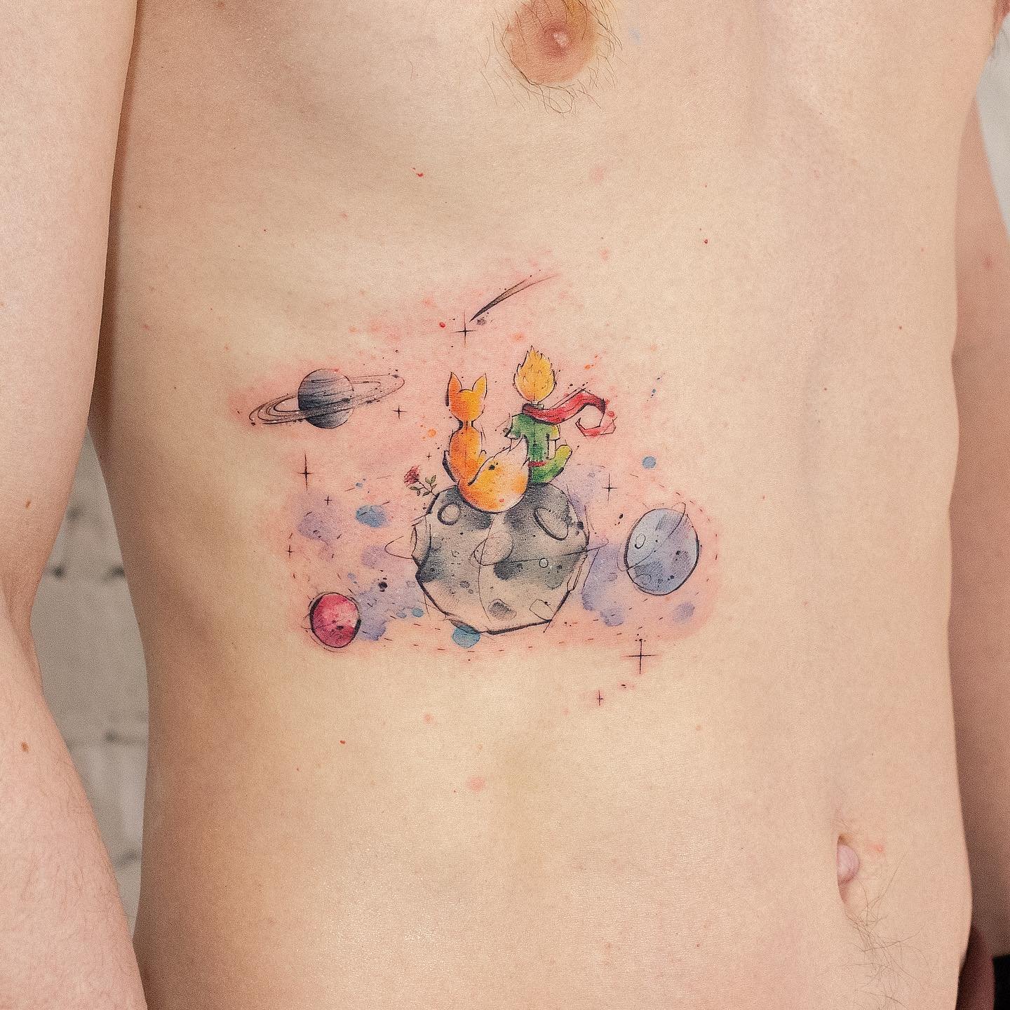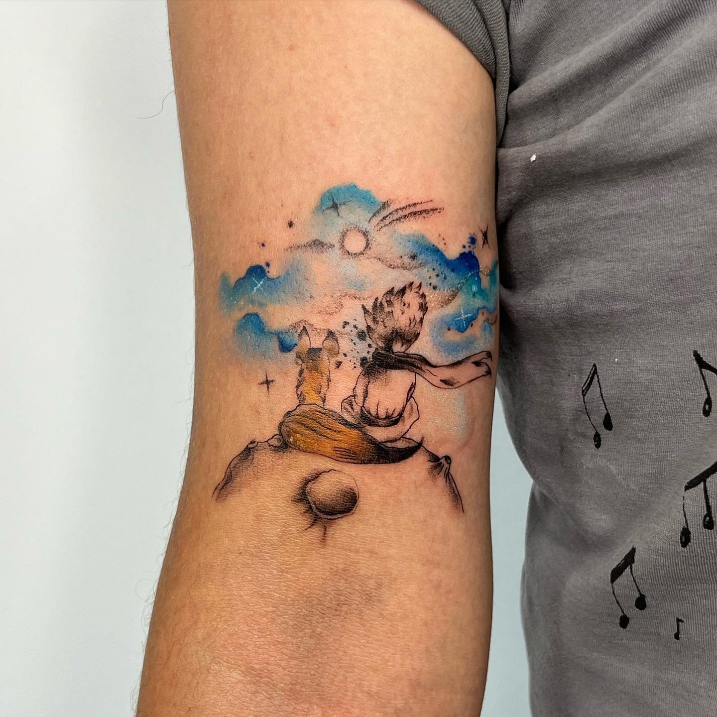 - Akvarelės stiliaus tatuiruotės su Mažojo princo atvaizdu pasižymi švelniais, išplautais perėjimais ir subtiliais spalvų gradientais, kurie padaro vaizdą dar magiškesnį. Šis stilius pabrėžia herojaus lengvumą ir svajingumą, jo ryšį su fantazijomis.