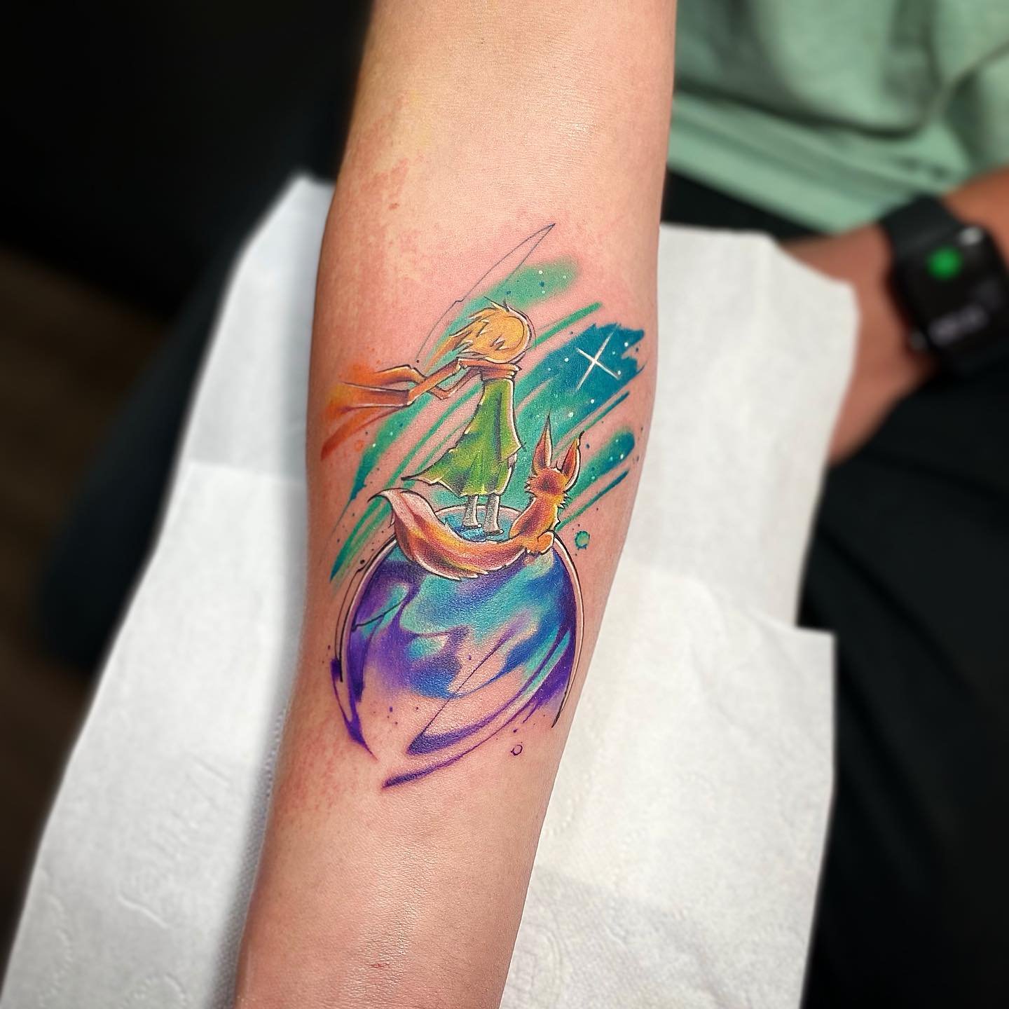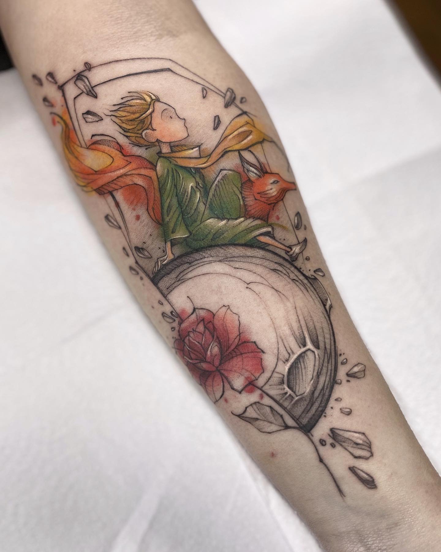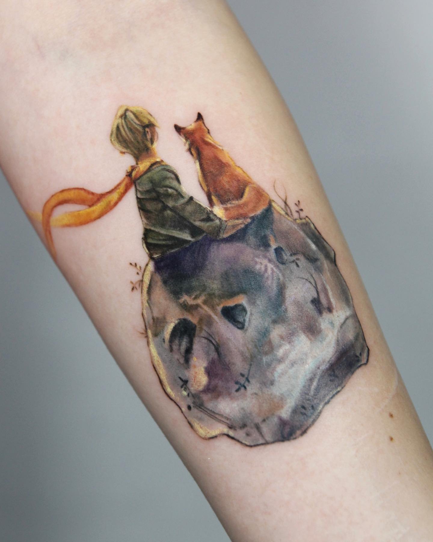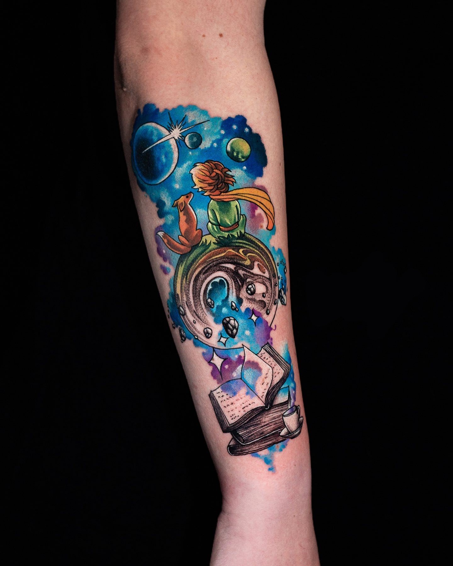 - Akvarelės stiliaus tatuiruotės su Mažojo princo atvaizdu pasižymi švelniais, išplautais perėjimais ir subtiliais spalvų gradientais, kurie padaro vaizdą dar magiškesnį. Šis stilius pabrėžia herojaus lengvumą ir svajingumą, jo ryšį su fantazijomis.