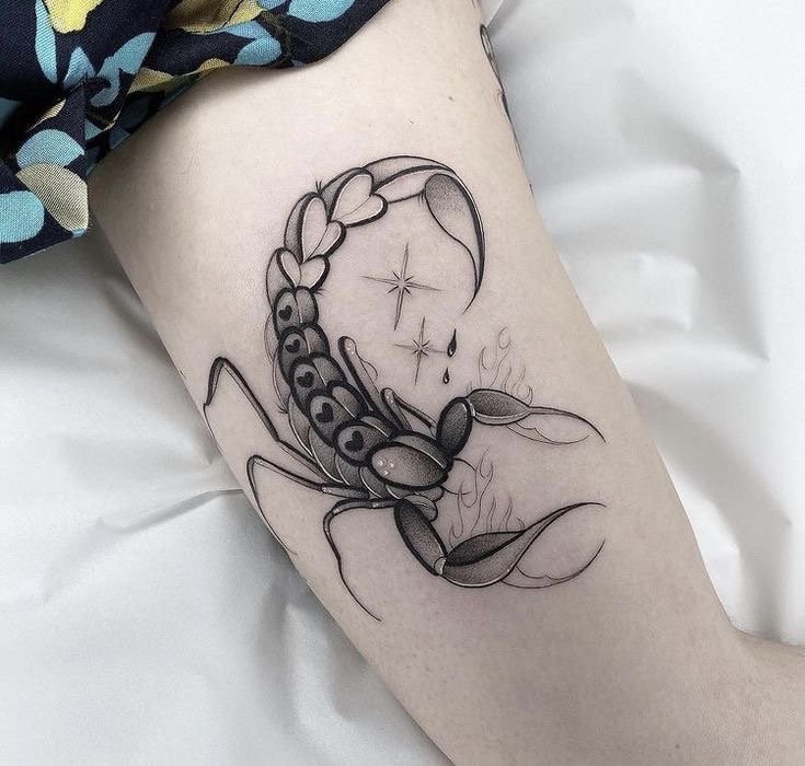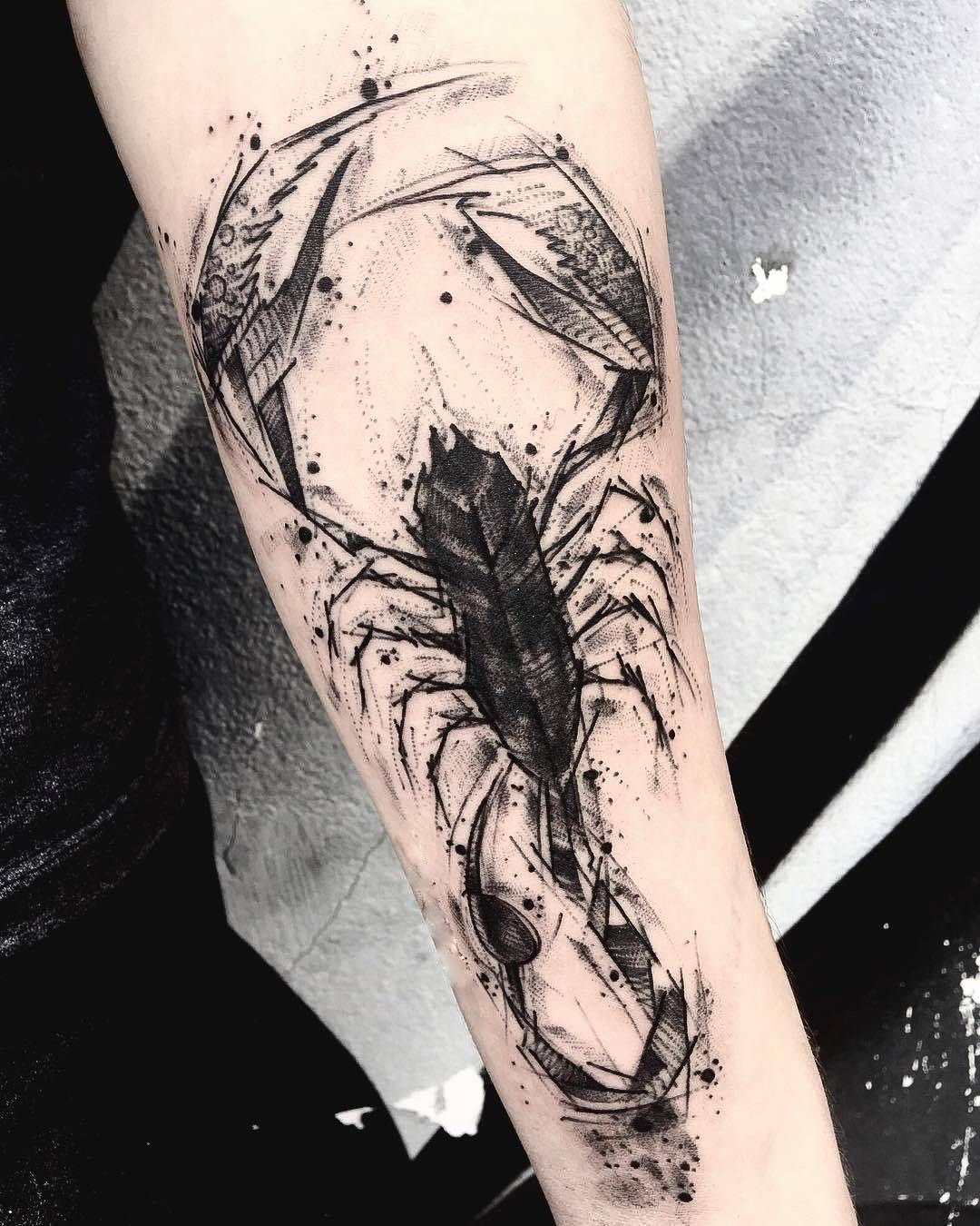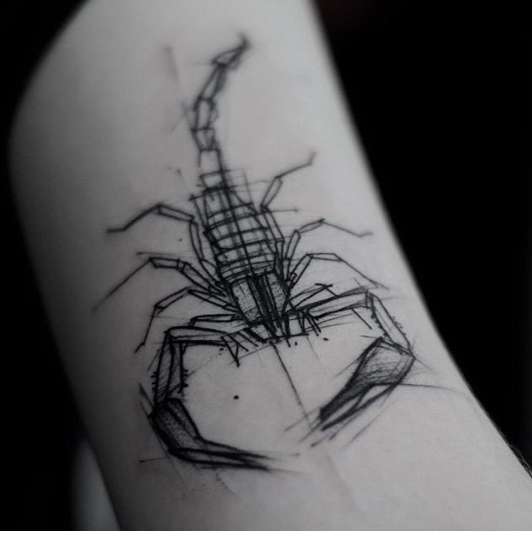 Tarp gausios eskizų įvairovės vertas dėmesio Skorpionas. Jis atrodo grakščiai, galingai, kiekvieną akimirką gali pulti. Skorpiono tatuiruotės eskizas elegantiškai atrodys visur – ant peties, nugaros, šlaunies, kaklo ar raktikaulio. Pakerės vyrus ir moteris savuoju realizmu, atspalviais, reikšme.